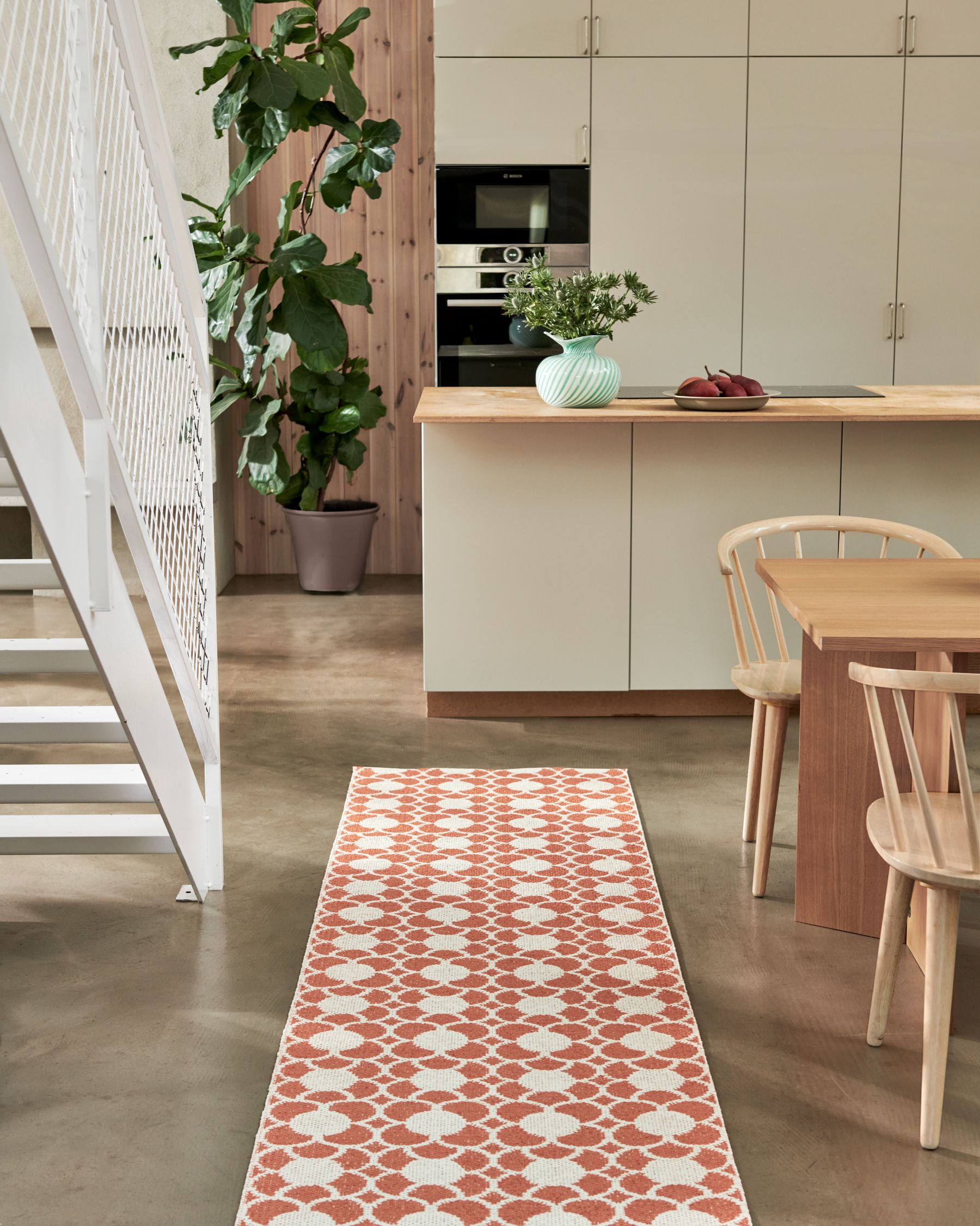 Jokainen Pappelina-matto on valmistettu paikallisessa kudontatehtaassa Leksandissa, Ruotsissa – todellinen pala ruotsalaista käsityötaitoa. Käytetty vain ruotsalaisia, ftalaattittomia PVC:tä yhdistettynä vahvaan polyesteriloimeen, joka luo kestäviä, myrkyttömiä mattoja, jotka viime vuonna ja vuodesta toiseen. Ammattitaitoisilla kutojilla ja korkealaatuisilla matoilla jokainen matto heijastaa nykyaikaista skandinaavista muotoilua, eloisia värejä ja maailman johtavaa laatua.