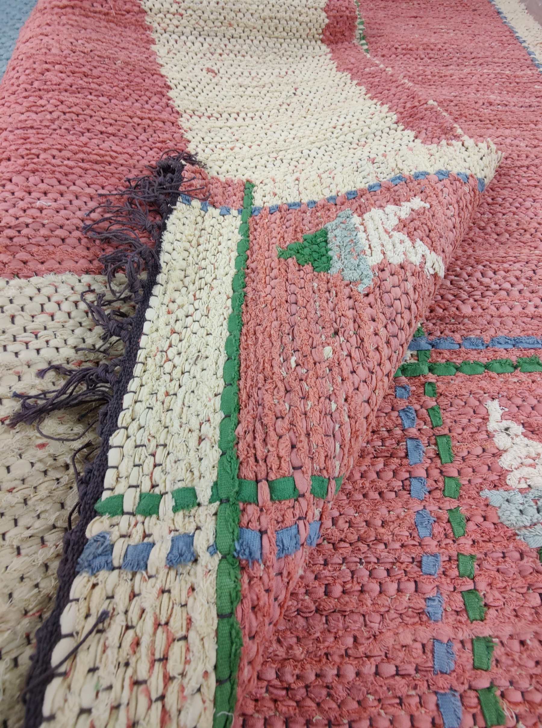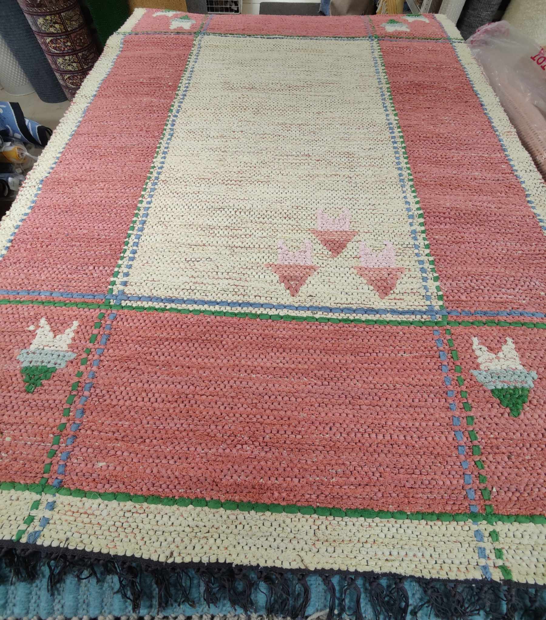 Apila puuvillamatto kauniissa roosan sekä valkoisen väreissä. Käsinkudottu.