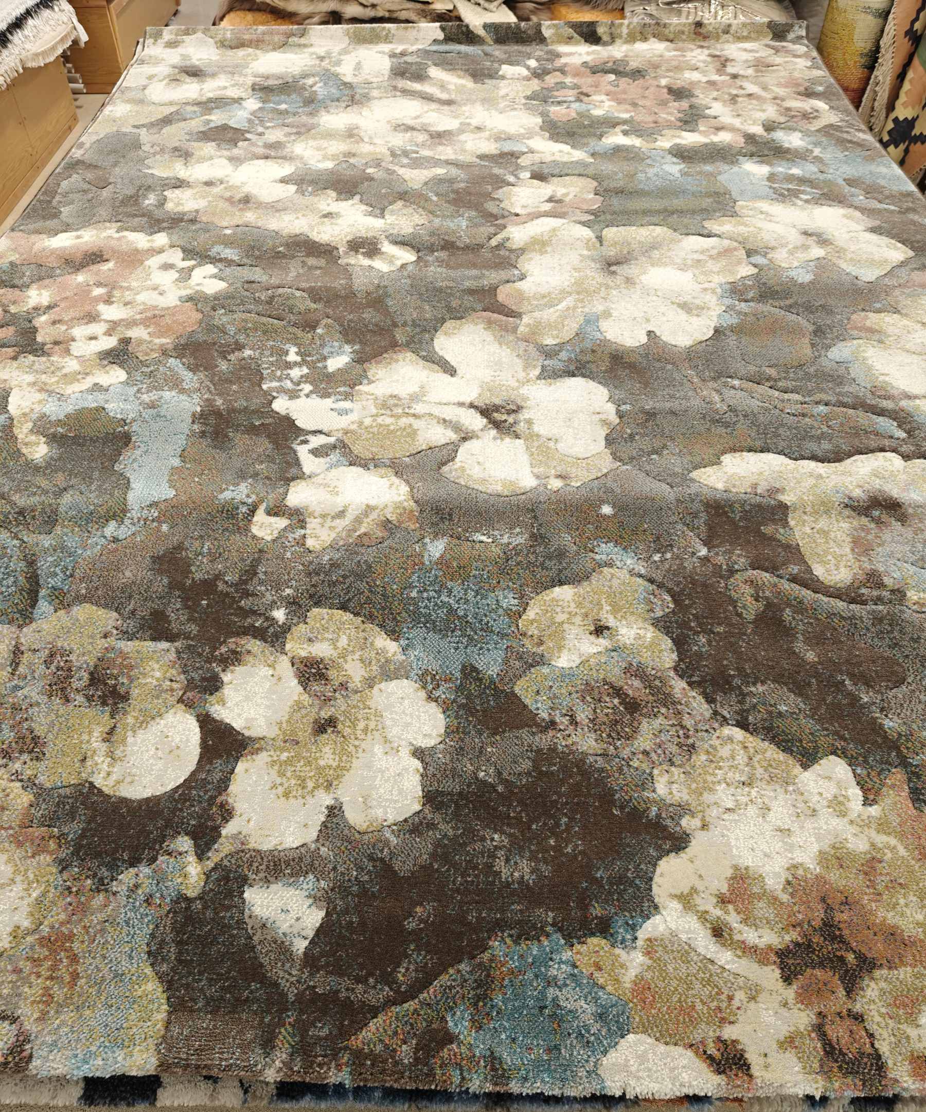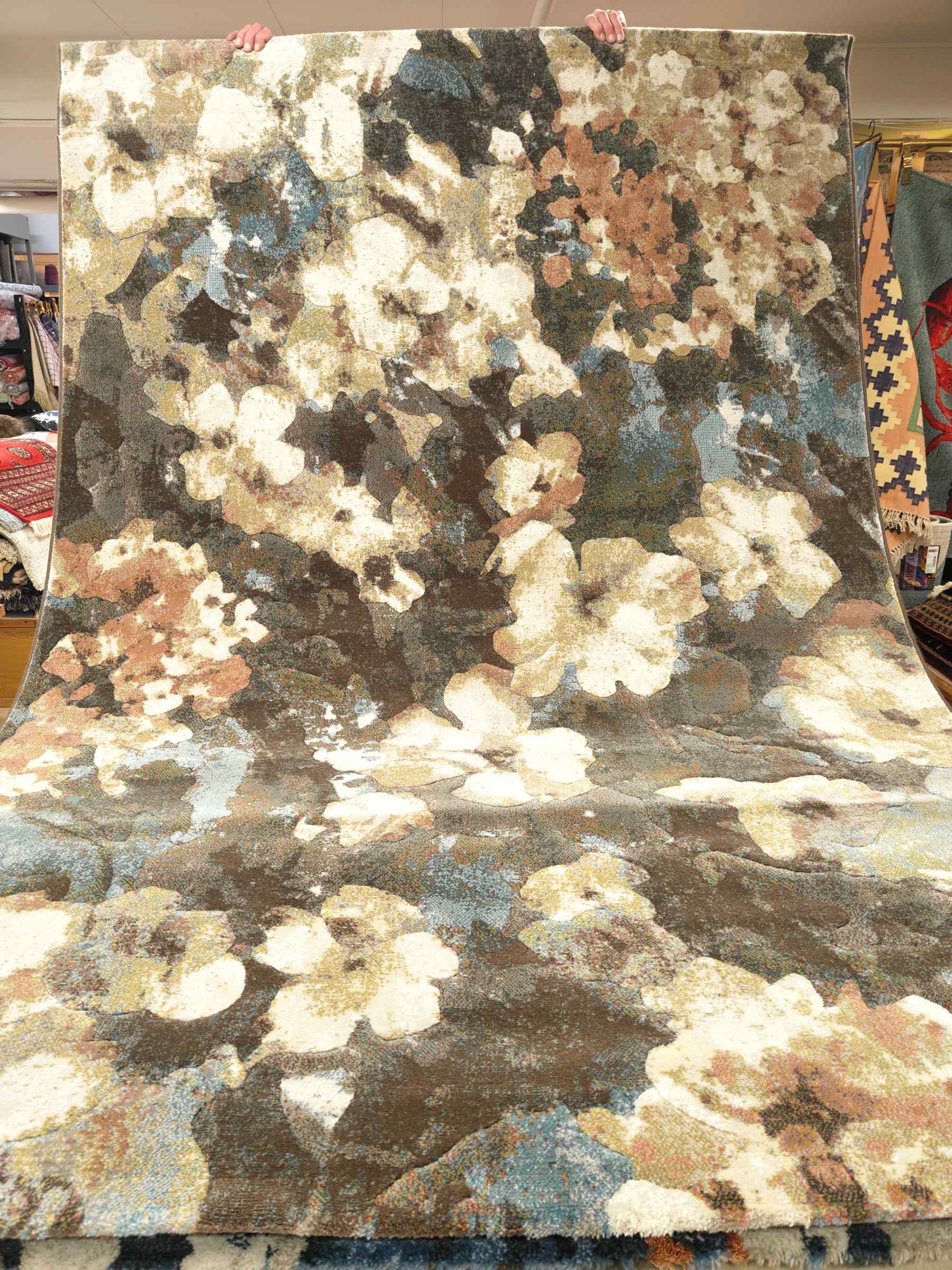 Upea ja ylellisen tiivis nukkamatto. Kaunis kukallinen kuosi.