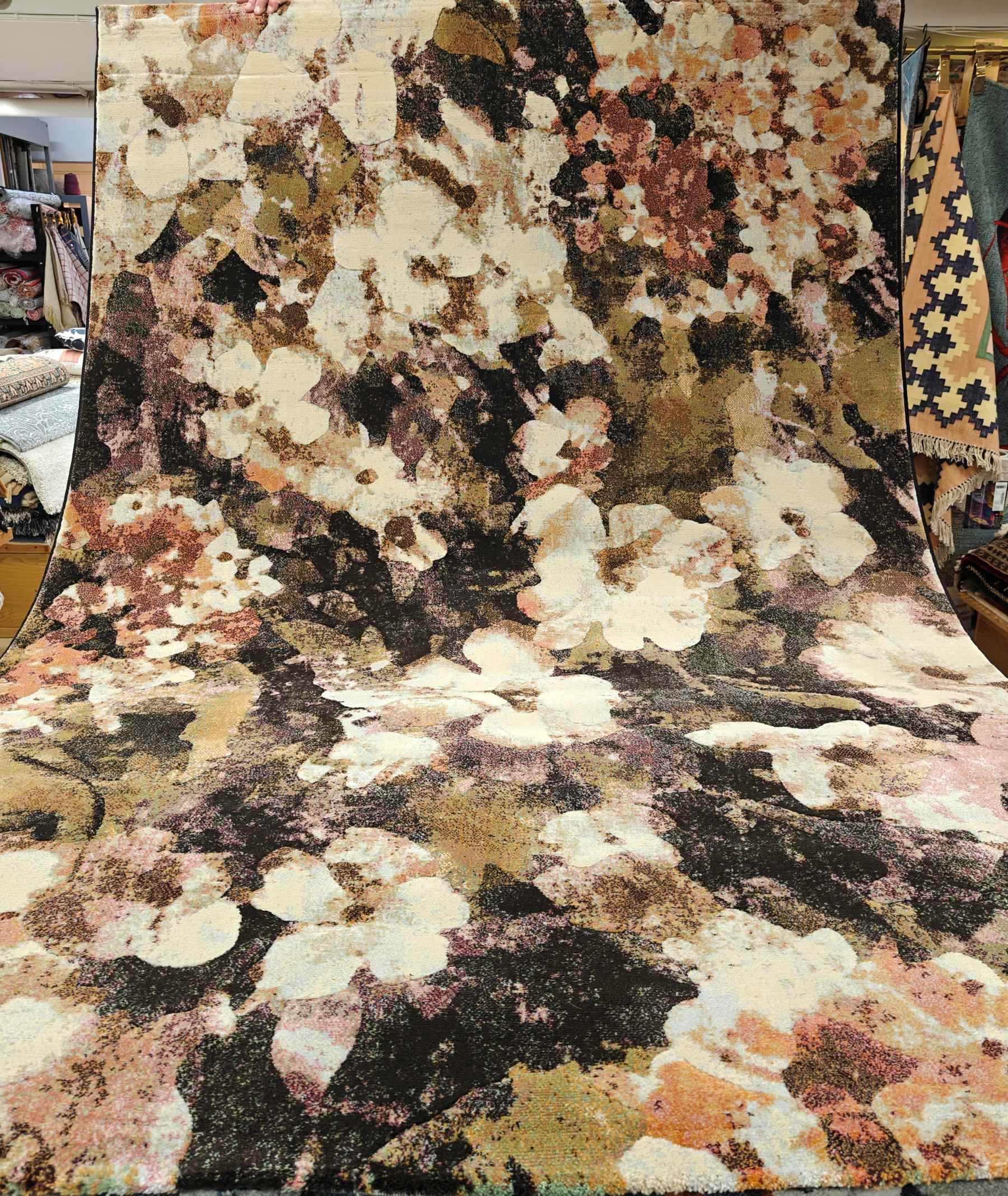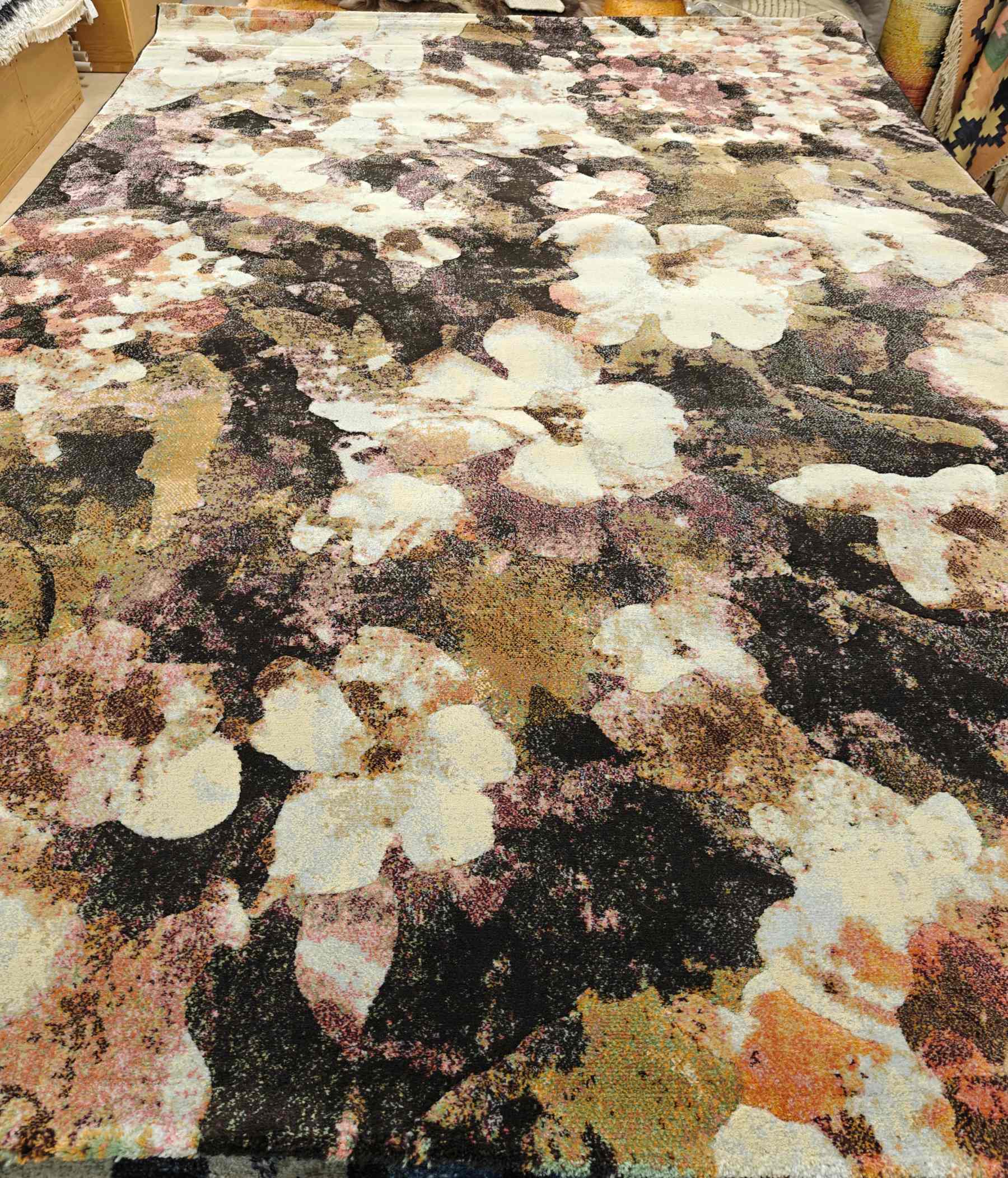 Upea ja ylellisen tiivis nukkamatto. Kaunis kukallinen kuosi.