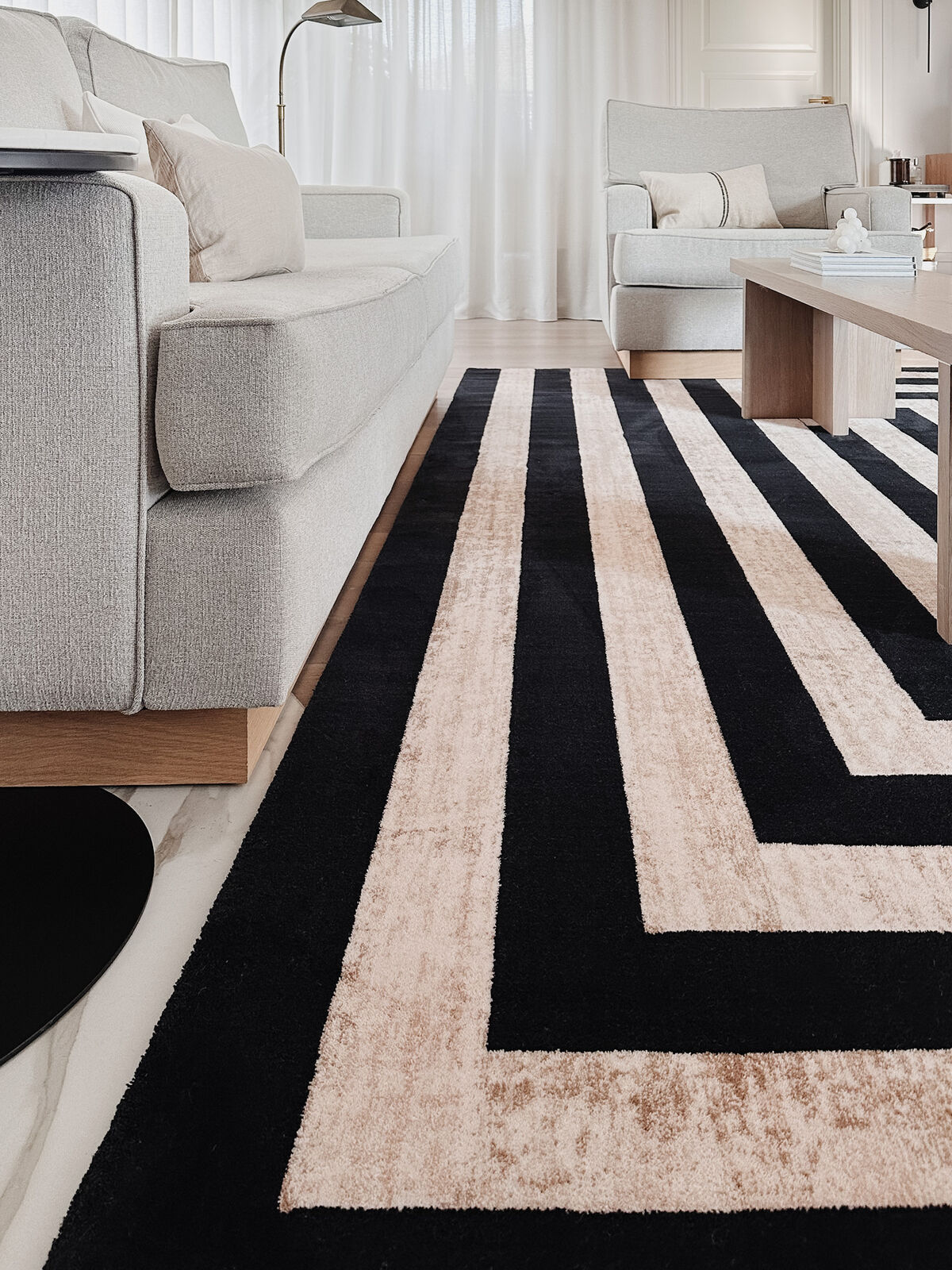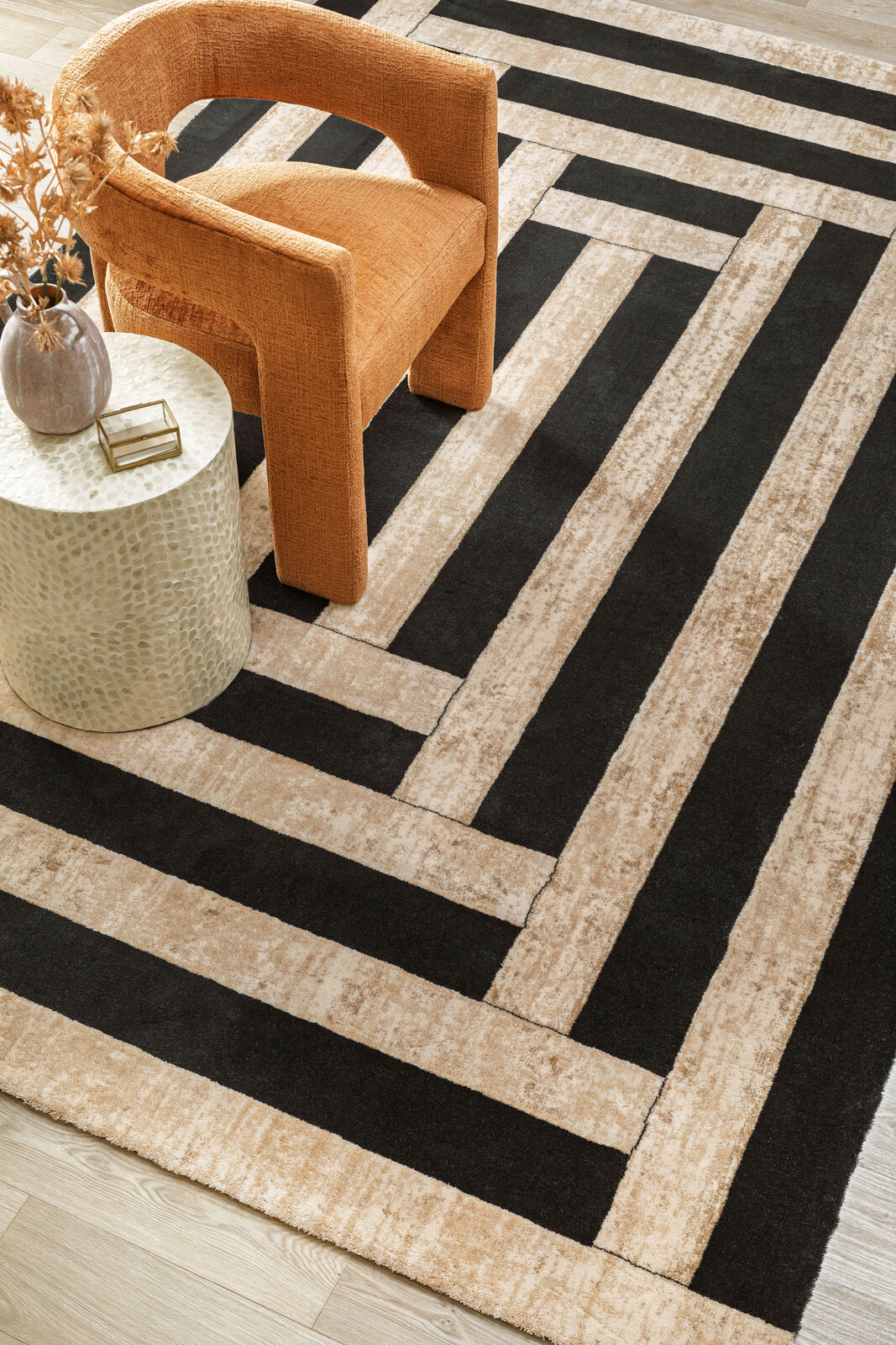 Agnella Art Deco villamatossa on ajaton desing, rohkeat kuviot sekä tyylitelty estetiikka, mitkä luovat huoneeseen visuaalista mielenkiintoa ja luonnetta.