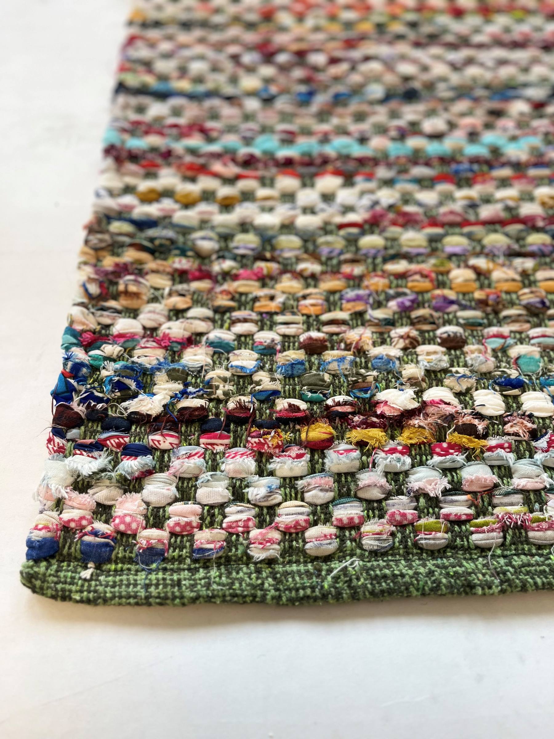 Dala on iloisen kirjava puuvilla-räsymatto, sopii niin kotiin kuin kesämökille.