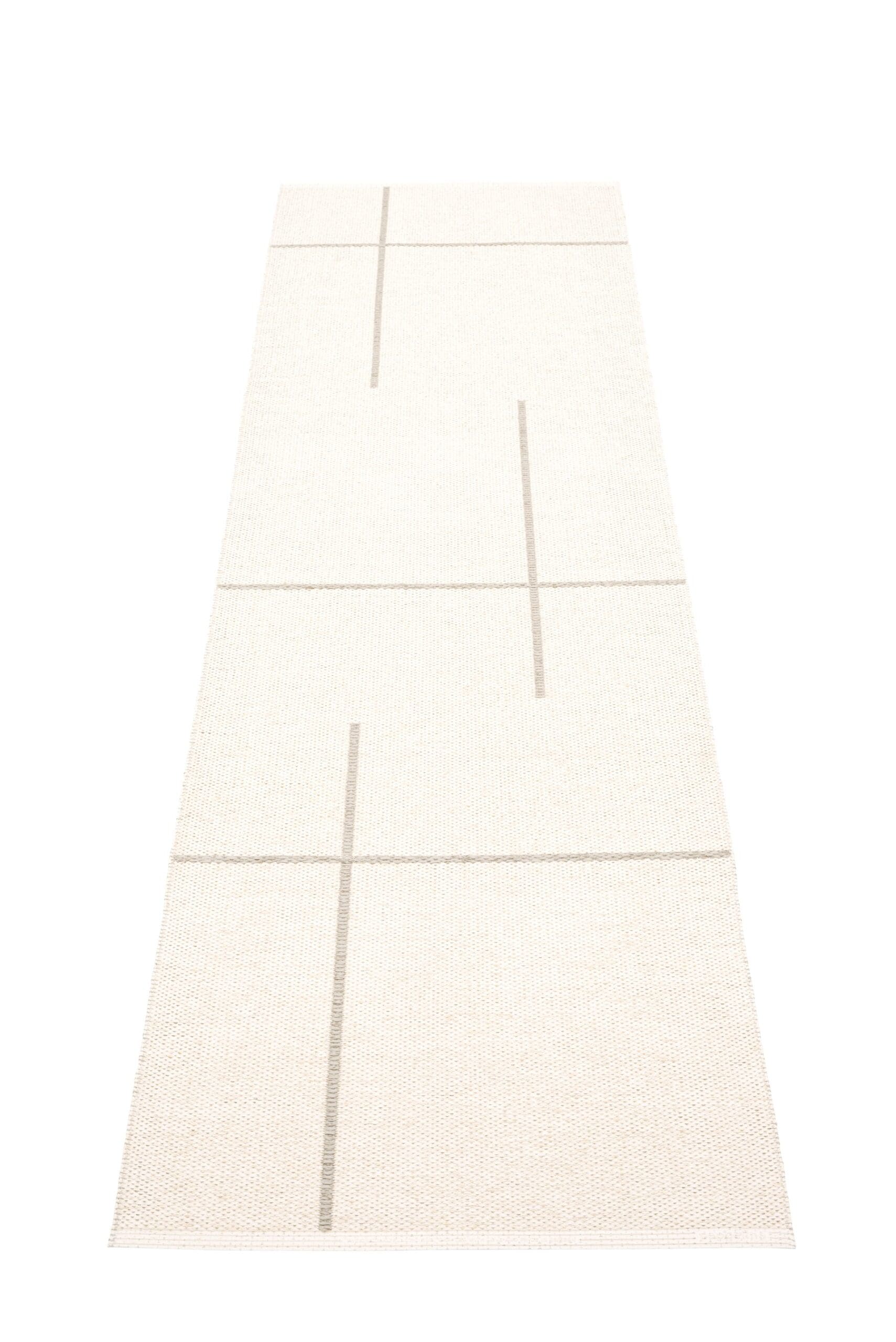 Muovimatto sisä- ja ulkokäyttöön, valmistettu Ruotsissa. Valmistettu Ruotsissa valmistetusta, sertifioidusta ftalaatittomasta PVC-nauhasta, joka on kudottu perinteisillä kangaspuilla puisilla sukkuloilla. Erittäin käytännöllinen ja helppohoitoinen, käsin- tai konepesu alhaisessa lämpötilassa 30°C/85F, ei linkousta.