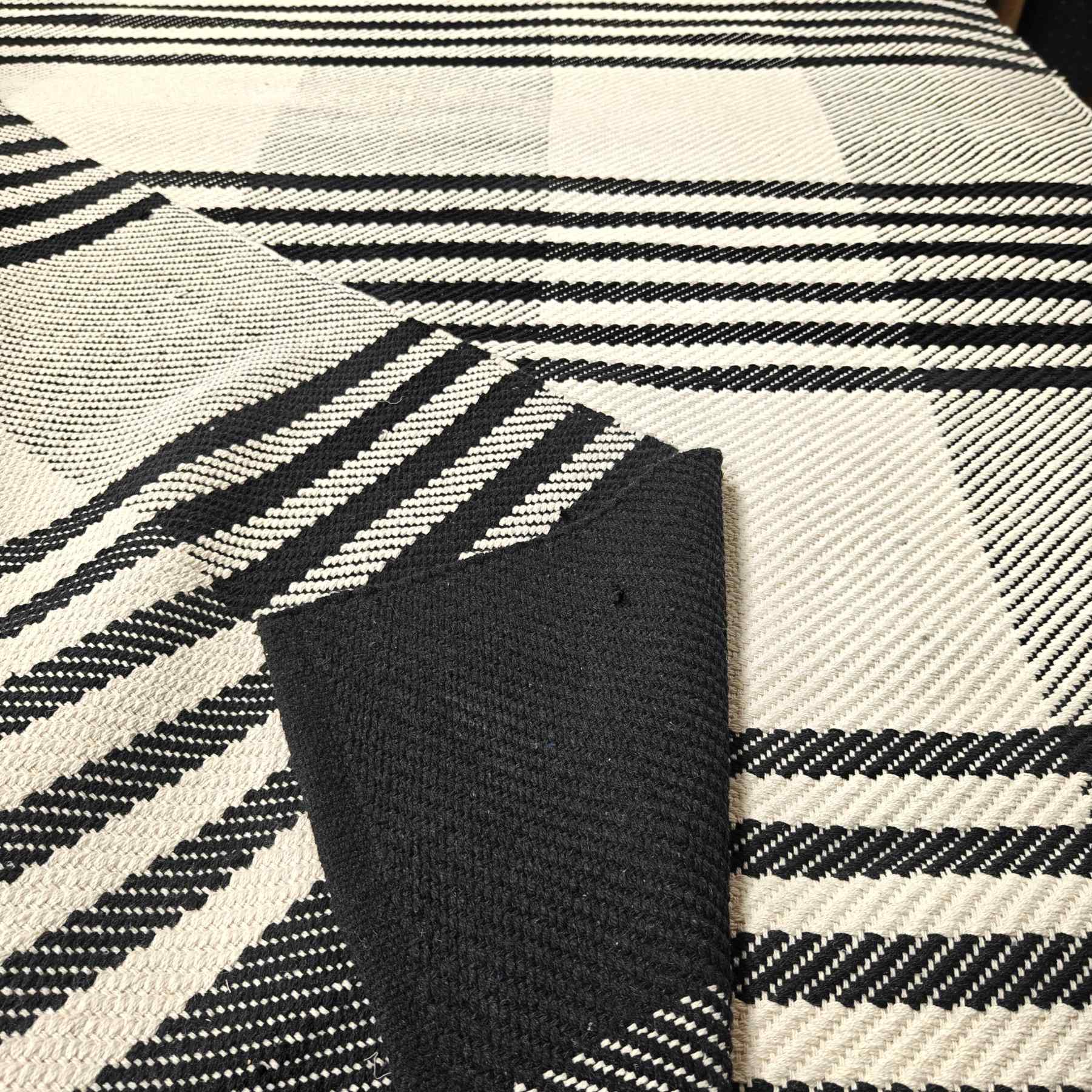 Musta-valkoinen Janni-matto on 100% kierrätyspuuvillasta valmistettu, kevyt käsitellä.