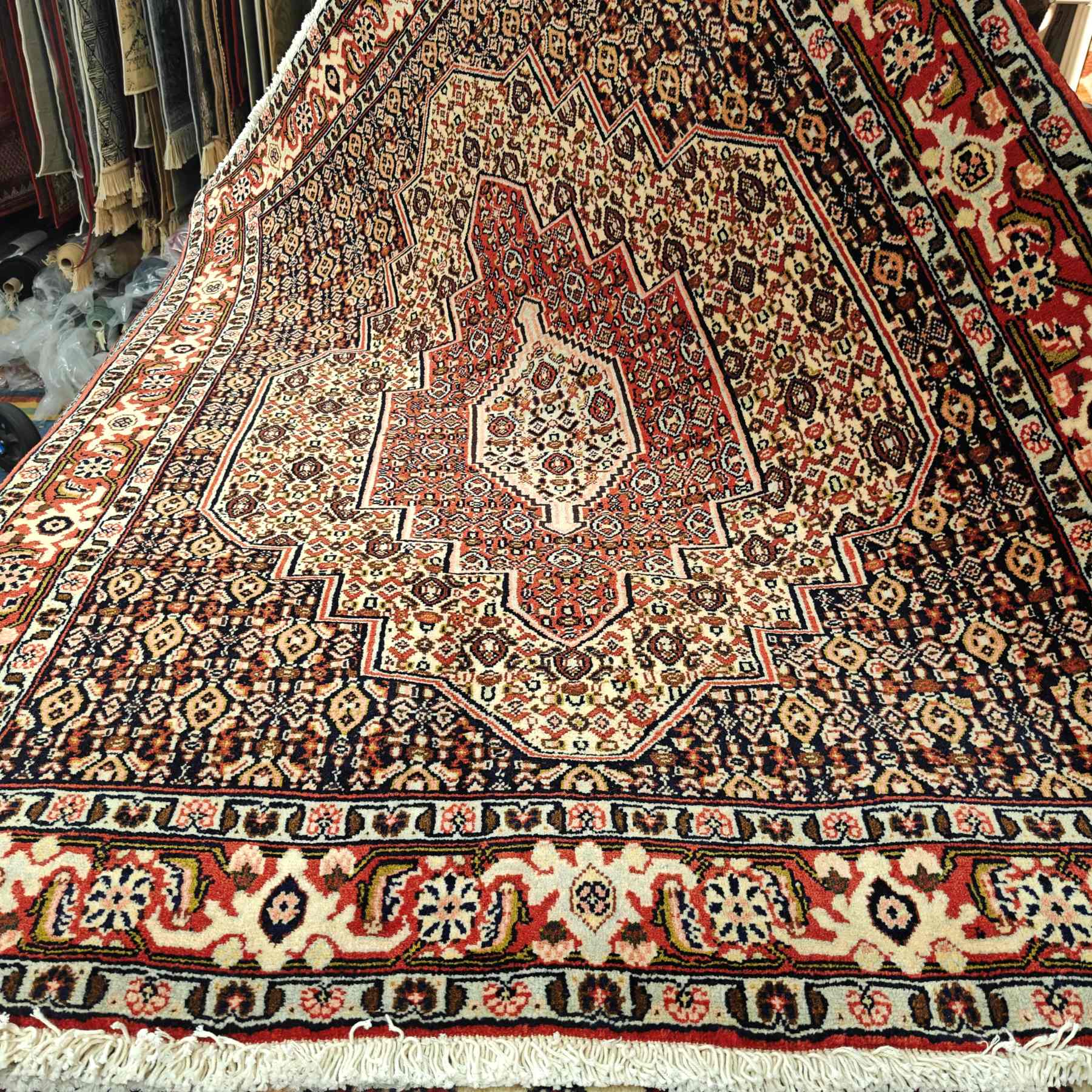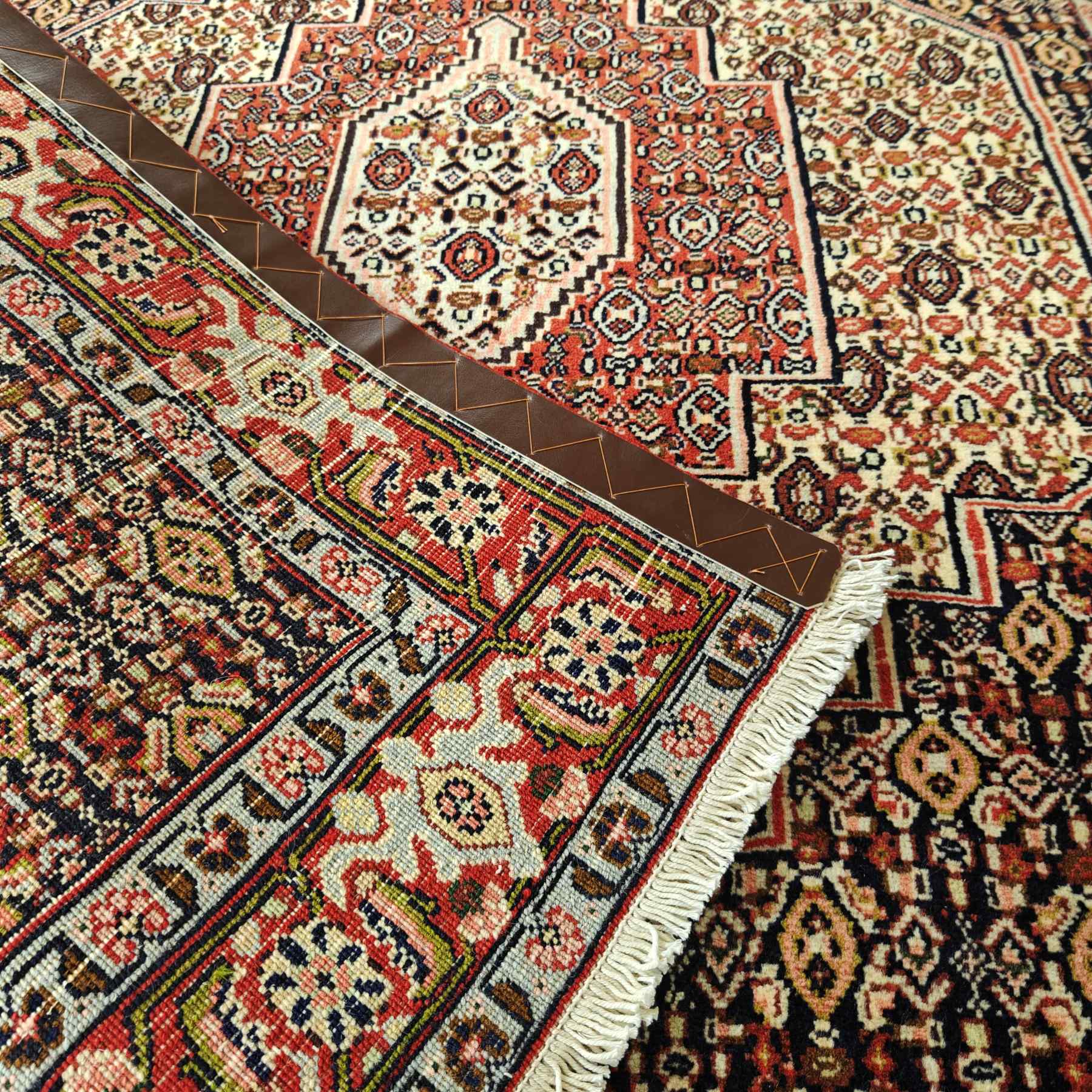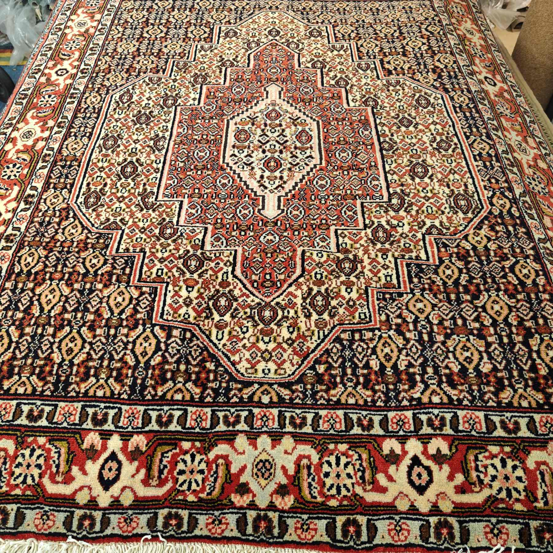 Upea käsinsolmittu iranilainen villamatto.