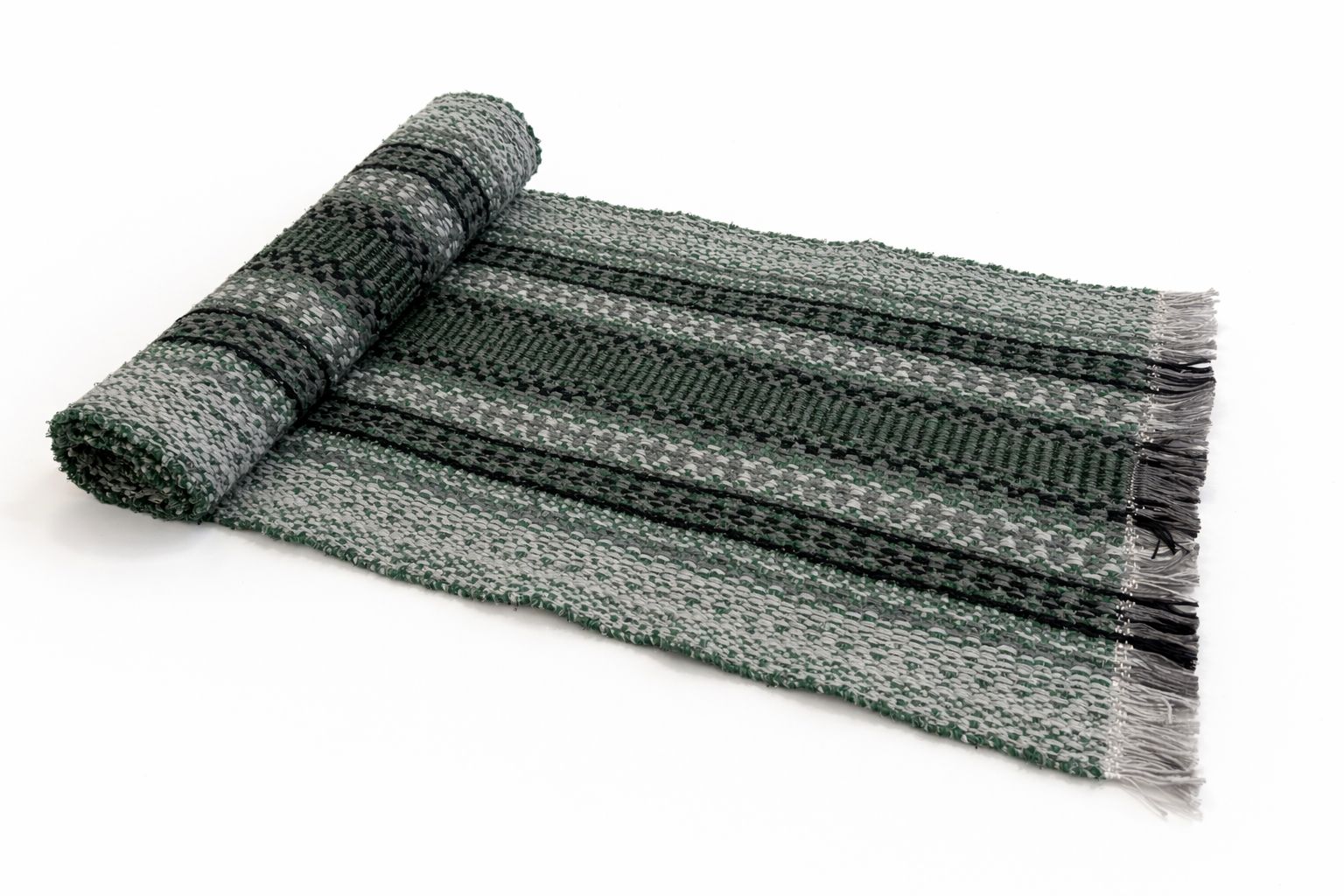Kotimainen kudottu keinutuolinmatto. Materiaali 100%puuvilla.
