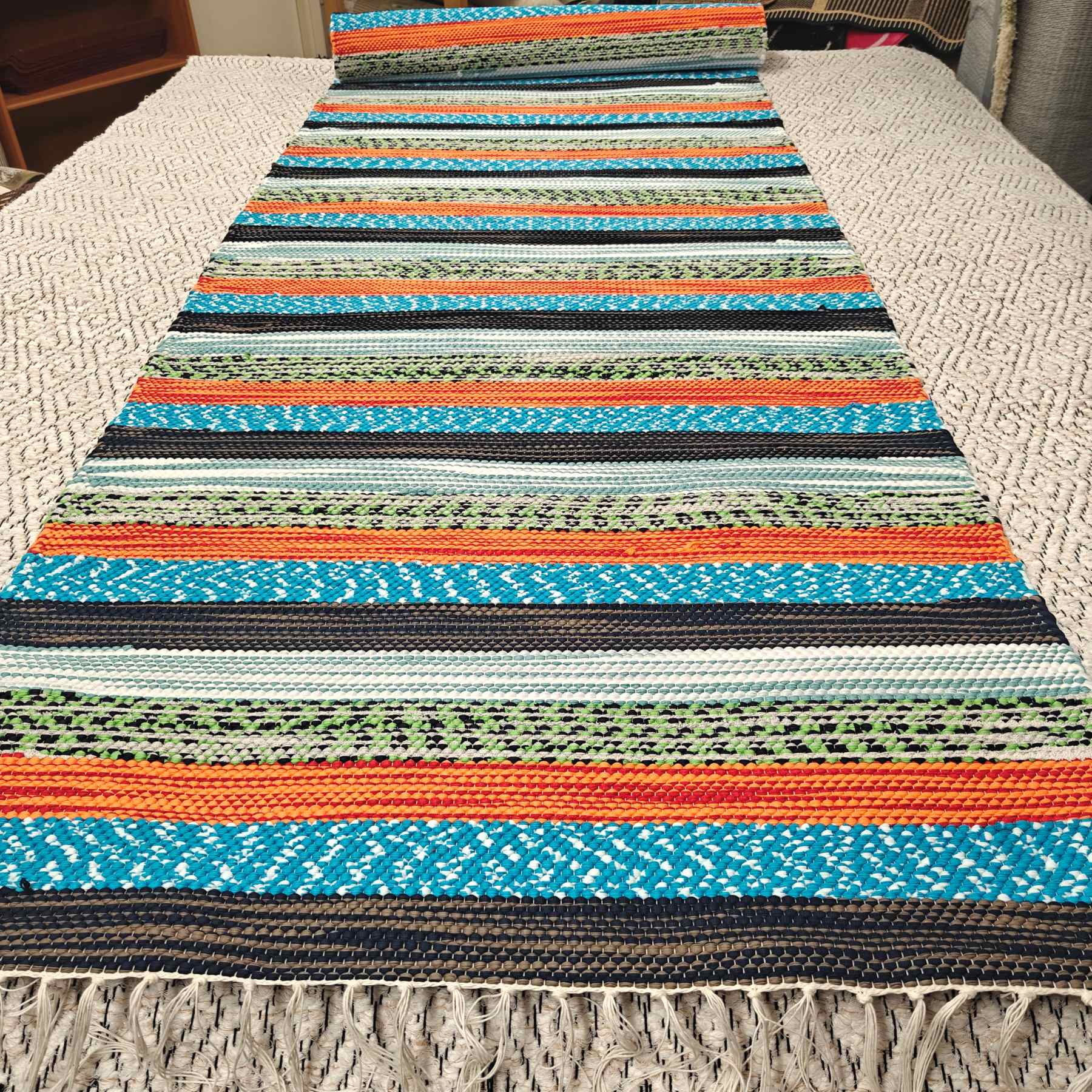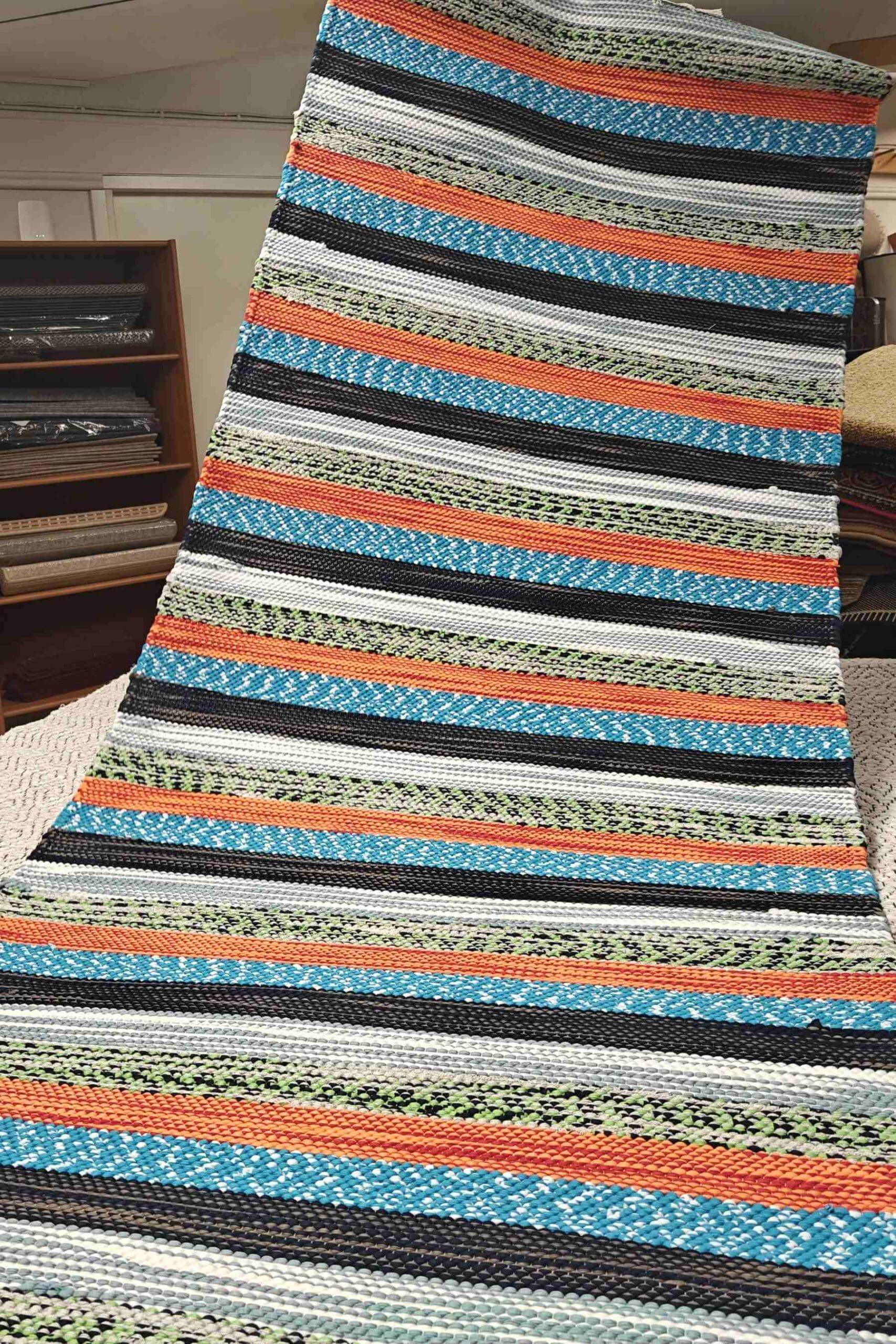 Kotimainen ja käsinkudottu laadukas matto. Valmistettu laadukkaasta trikookuteesta.