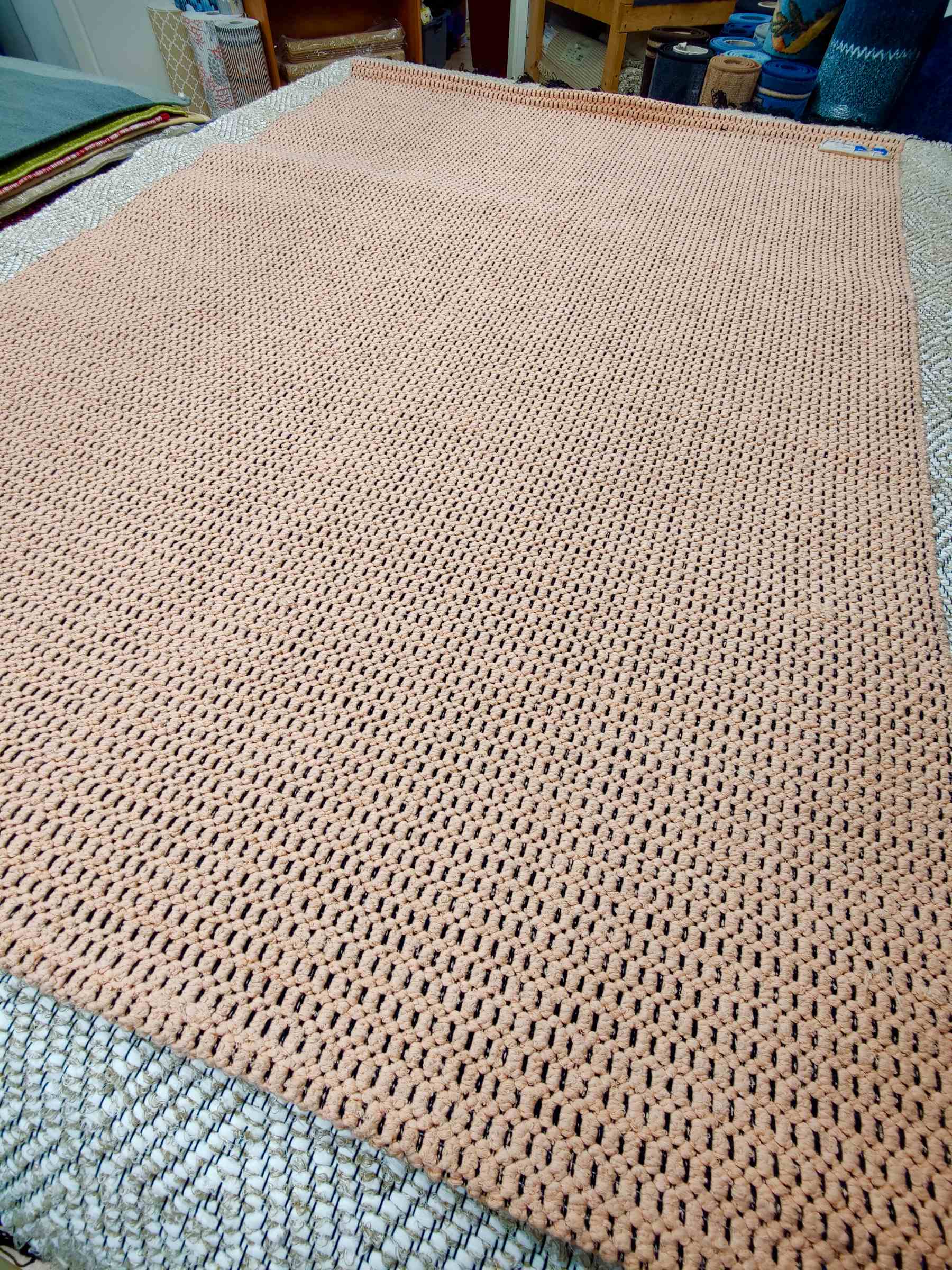 Kotimainen Mirva matto on kestävä koossa n.140 x 200 cm. Kaunis persikan sävy. Ei hapsuja päissä.