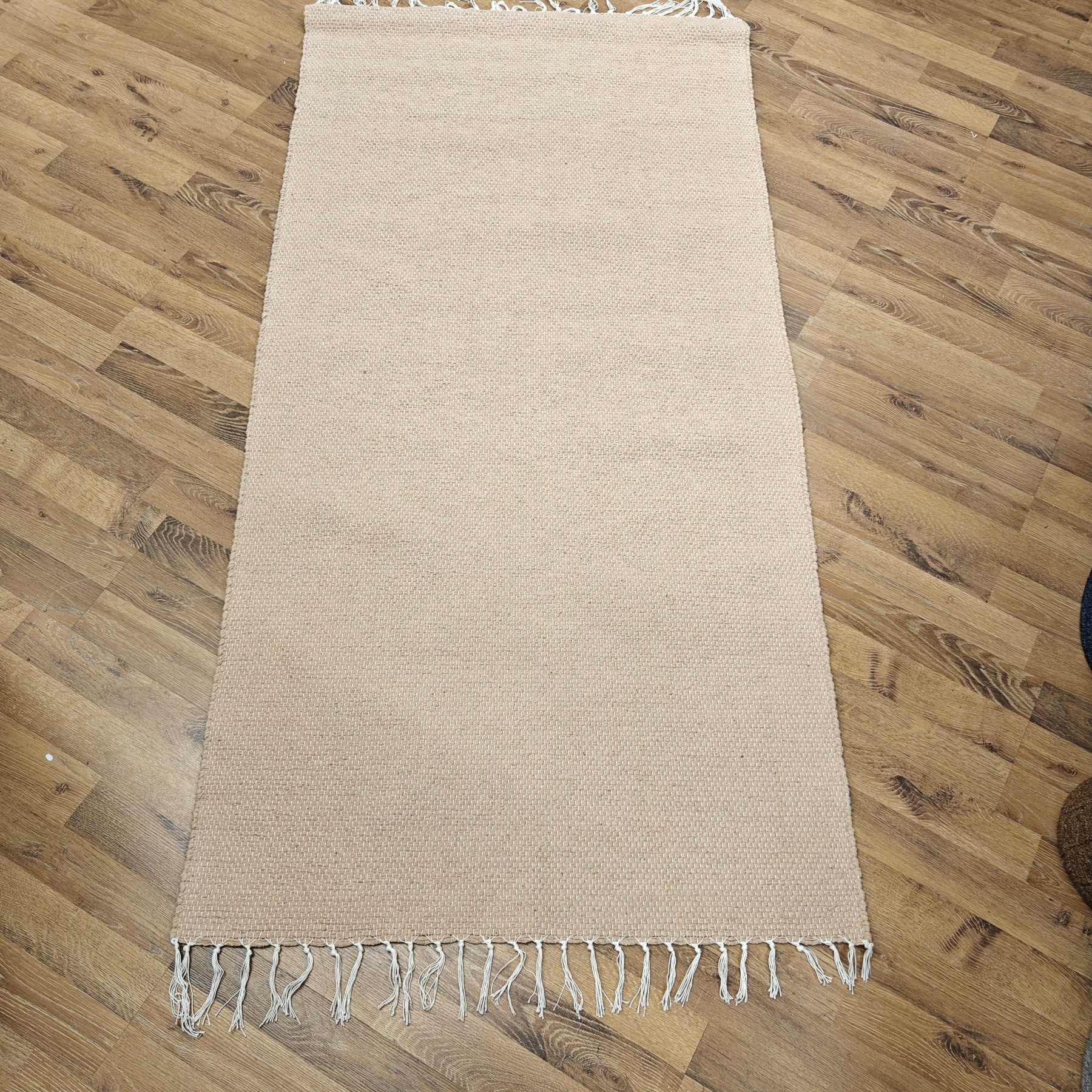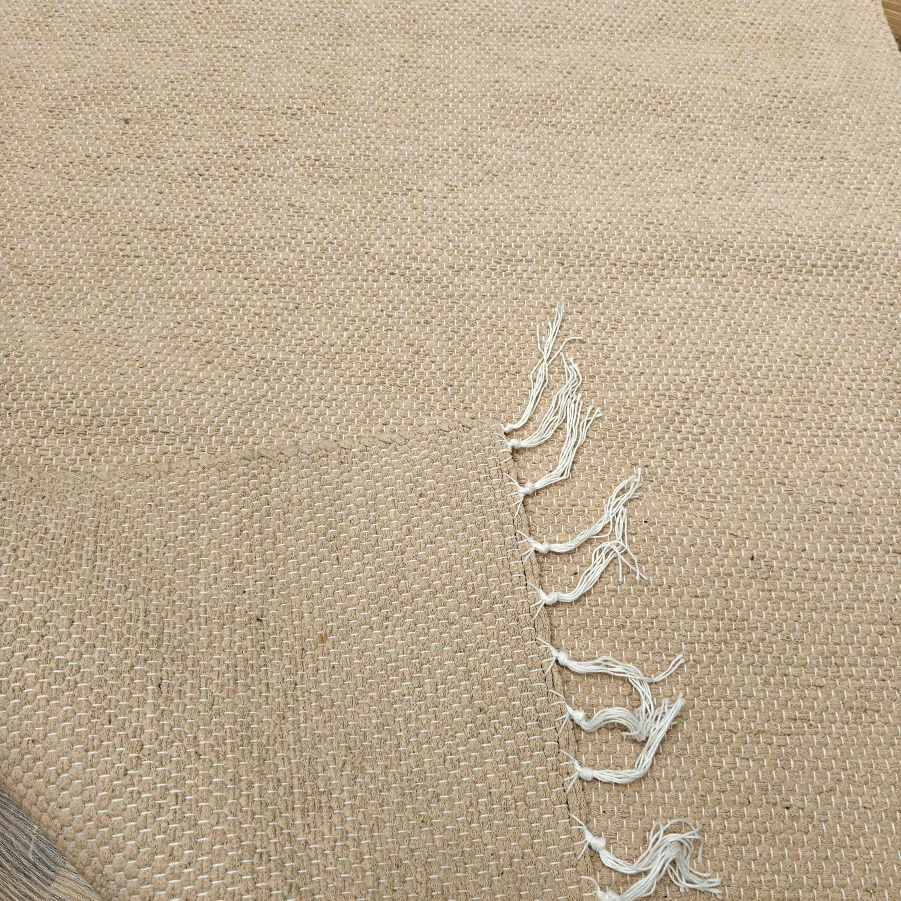 Beigen sävyinen puuvillamatto sopii niin kotiin kuin mökille!