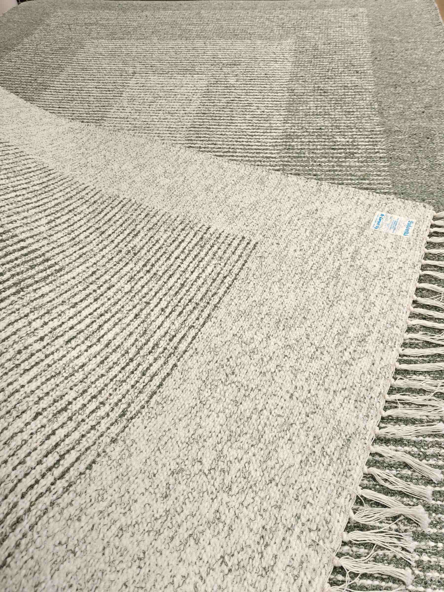 Laadukas ja kotimainen Salonki on kestävä puuvillamatto koossa 160 x 230 cm.  toisella puolella mattoa on käänteiset värit.