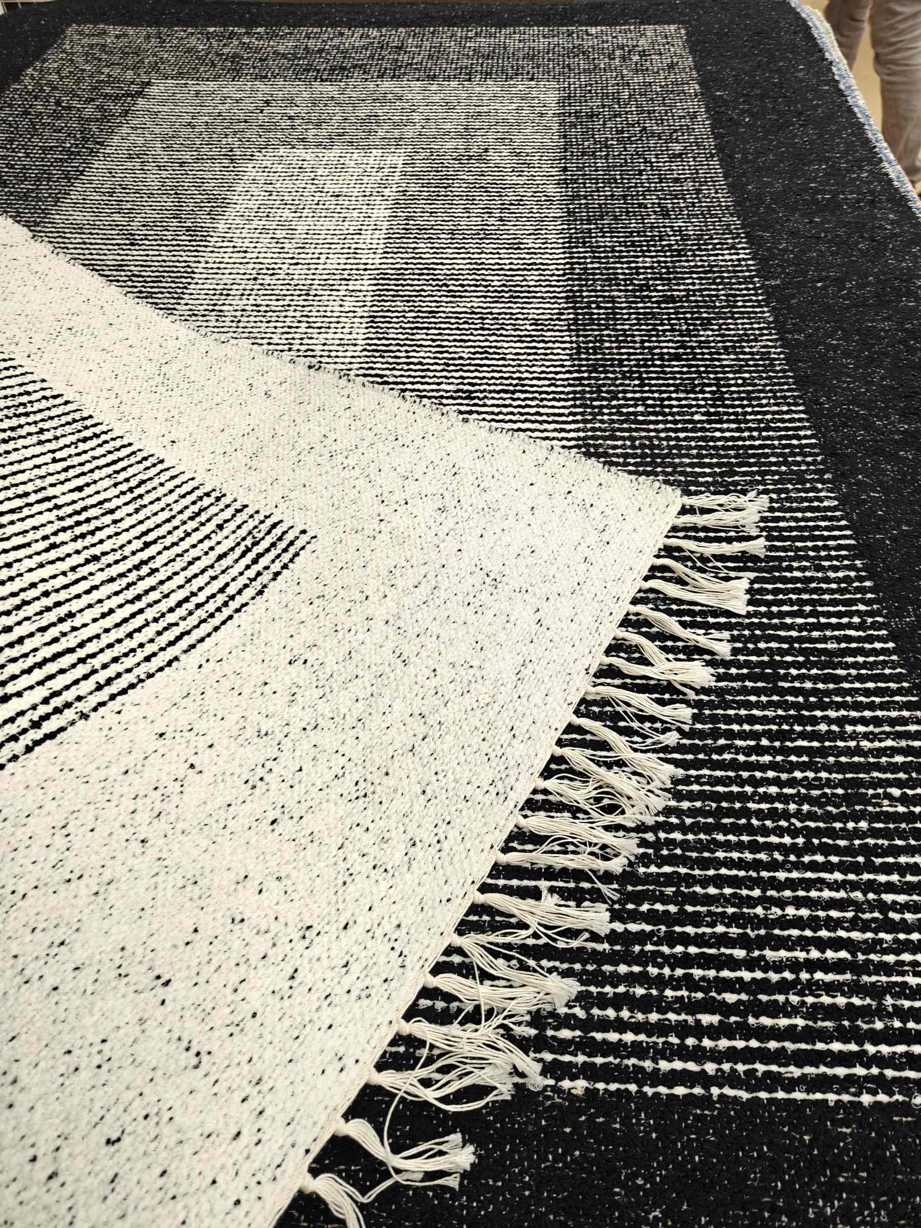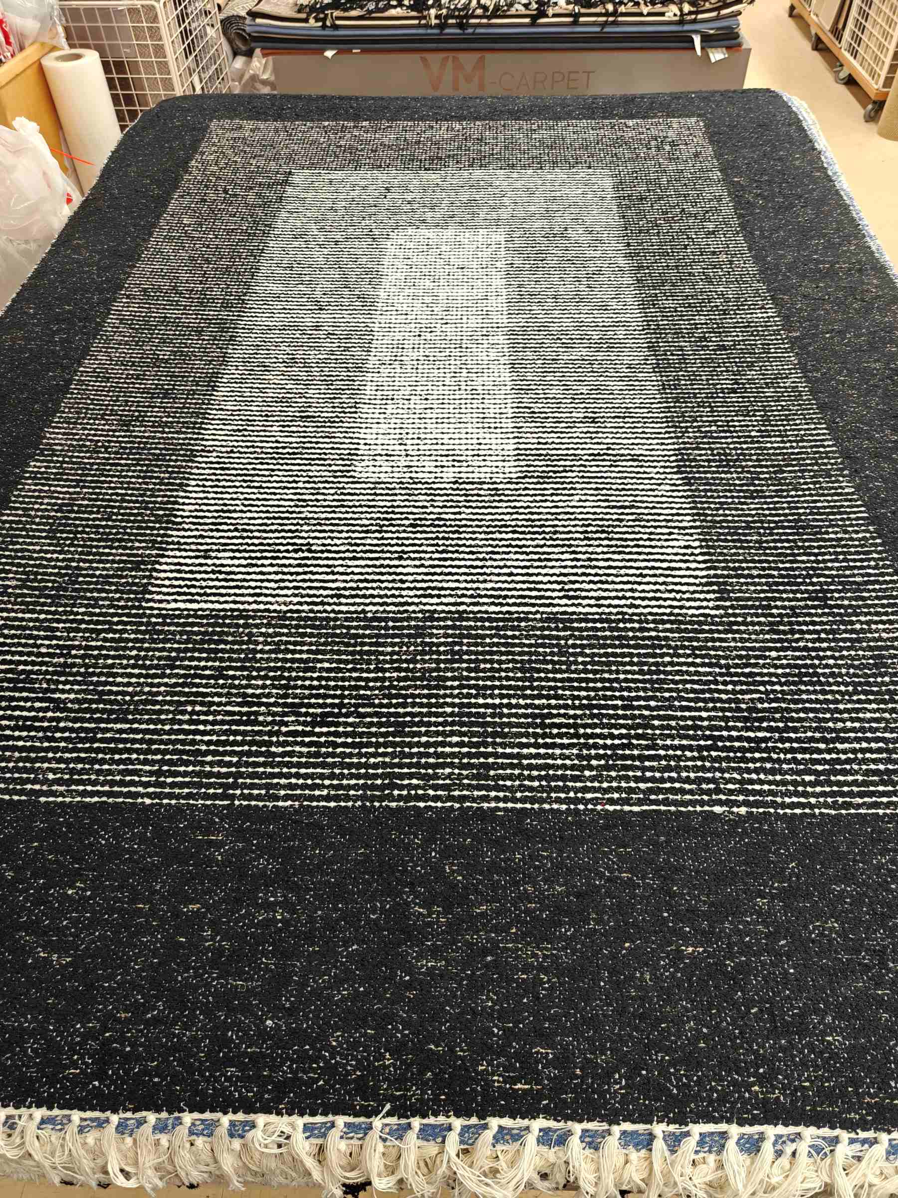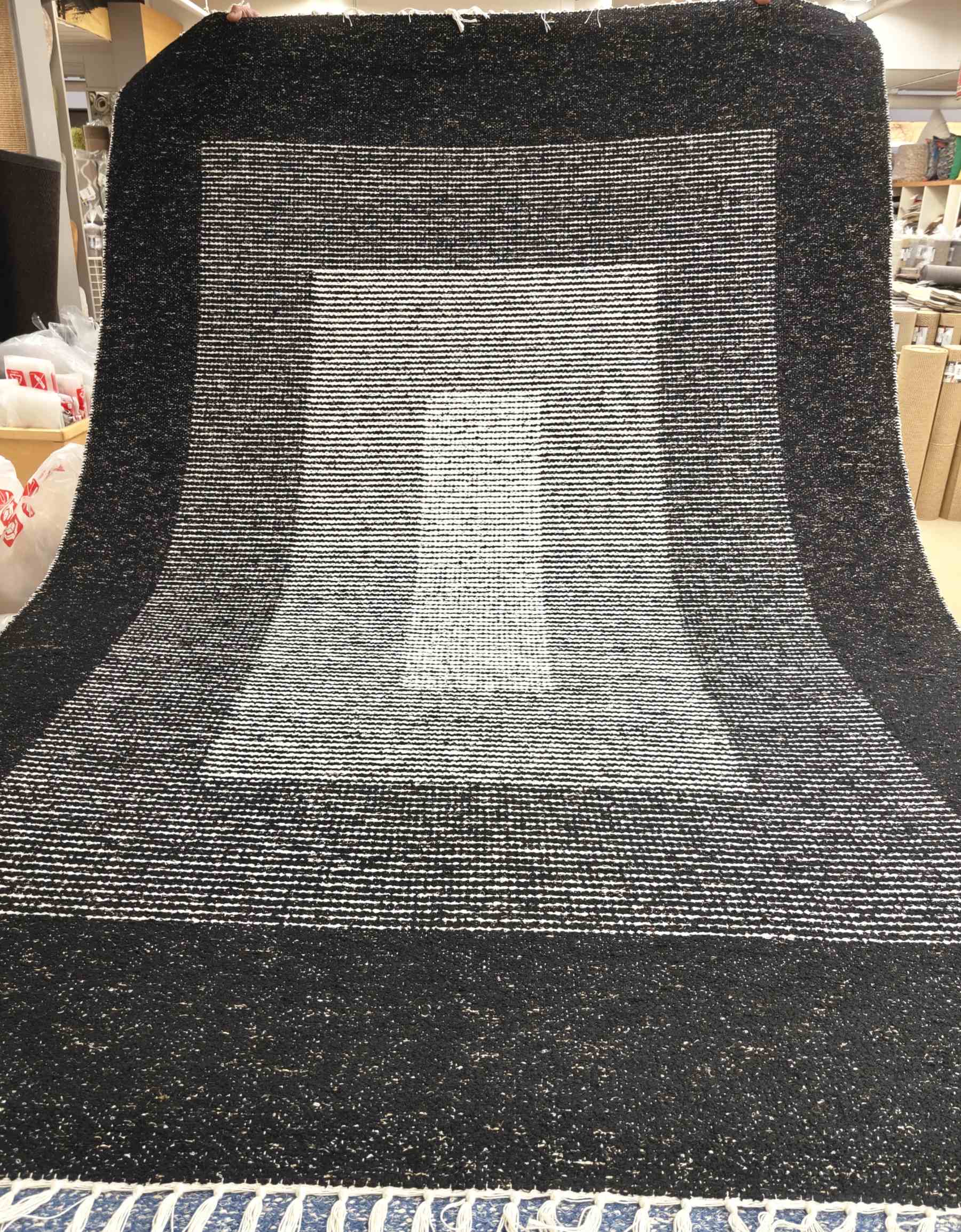 Laadukas ja kotimainen Salonki on kestävä puuvillamatto koossa 160 x 230 cm.  toisella puolella mattoa on käänteiset värit.