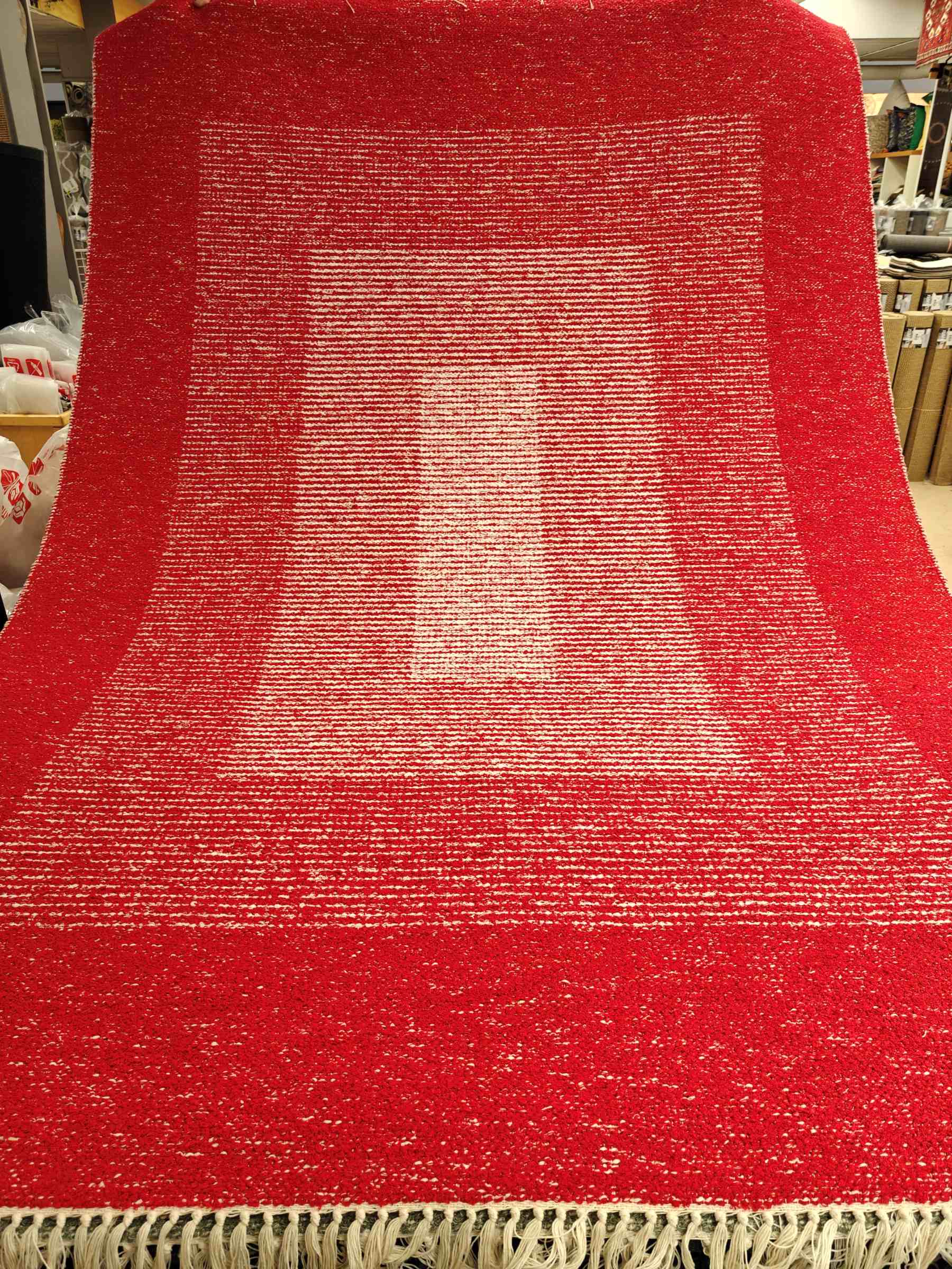 Laadukas ja kotimainen Salonki on kestävä puuvillamatto koossa 160 x 230 cm.  toisella puolella mattoa on käänteiset värit.
