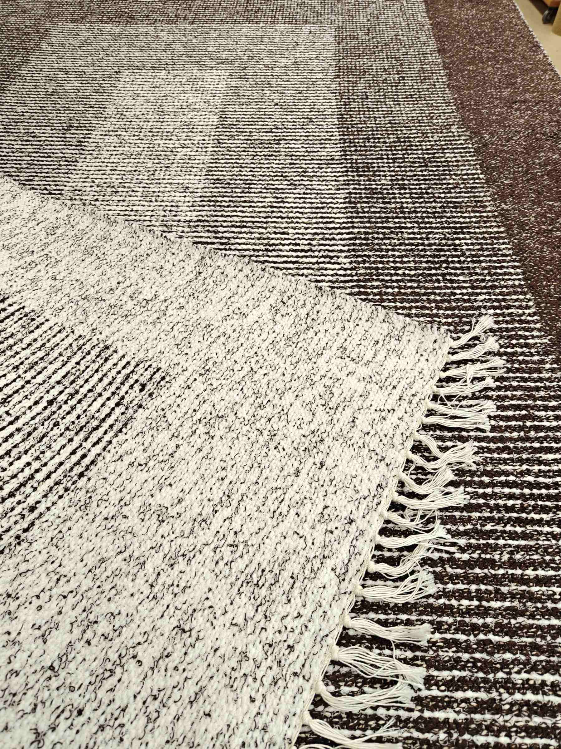 Laadukas ja kotimainen Salonki on kestävä puuvillamatto koossa 160 x 230 cm.  toisella puolella mattoa on käänteiset värit.