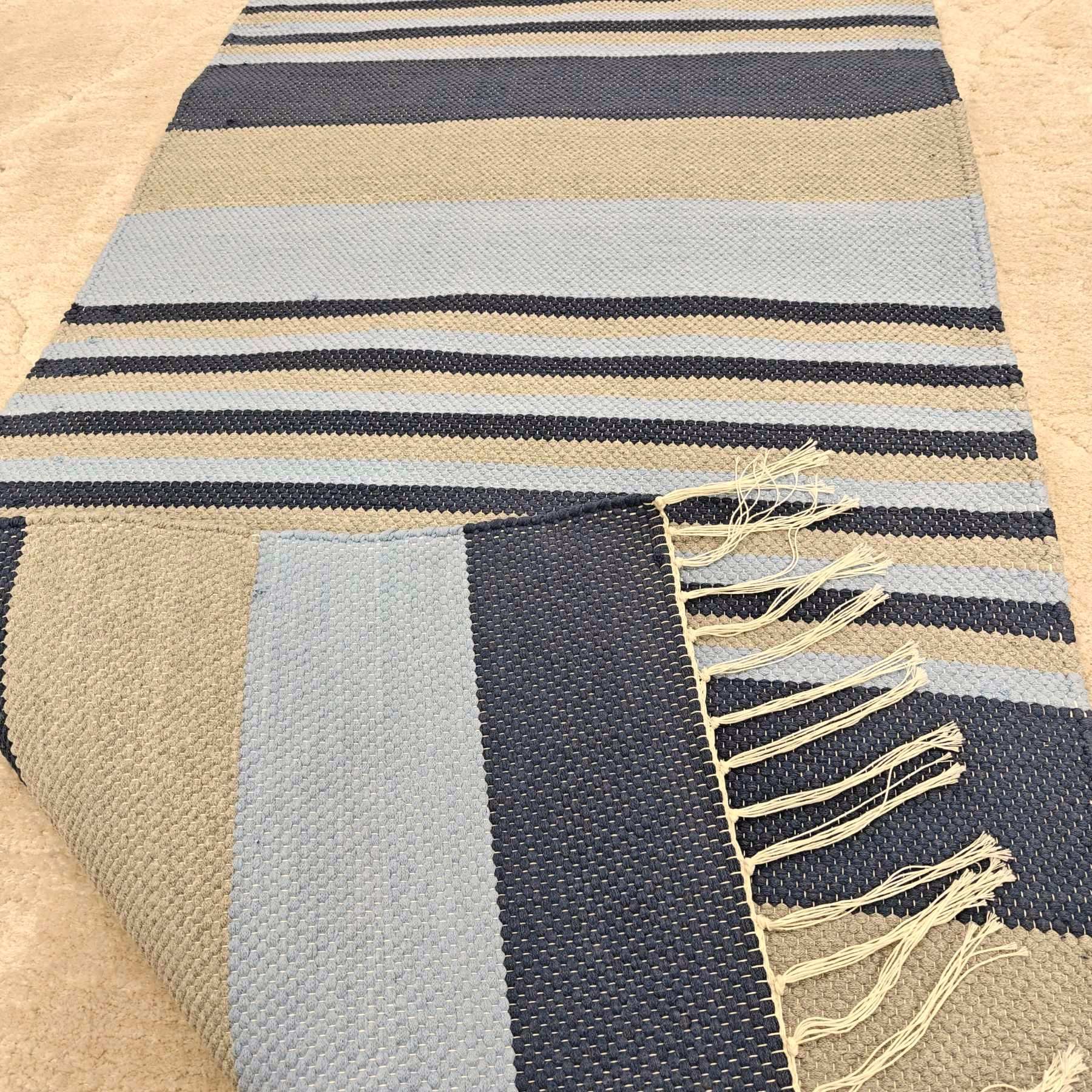 Aitoa käsityötä ja ekologisuutta kotiisi, kotimainen ja käsinkudottu laadukas matto. Päissä hapsut.