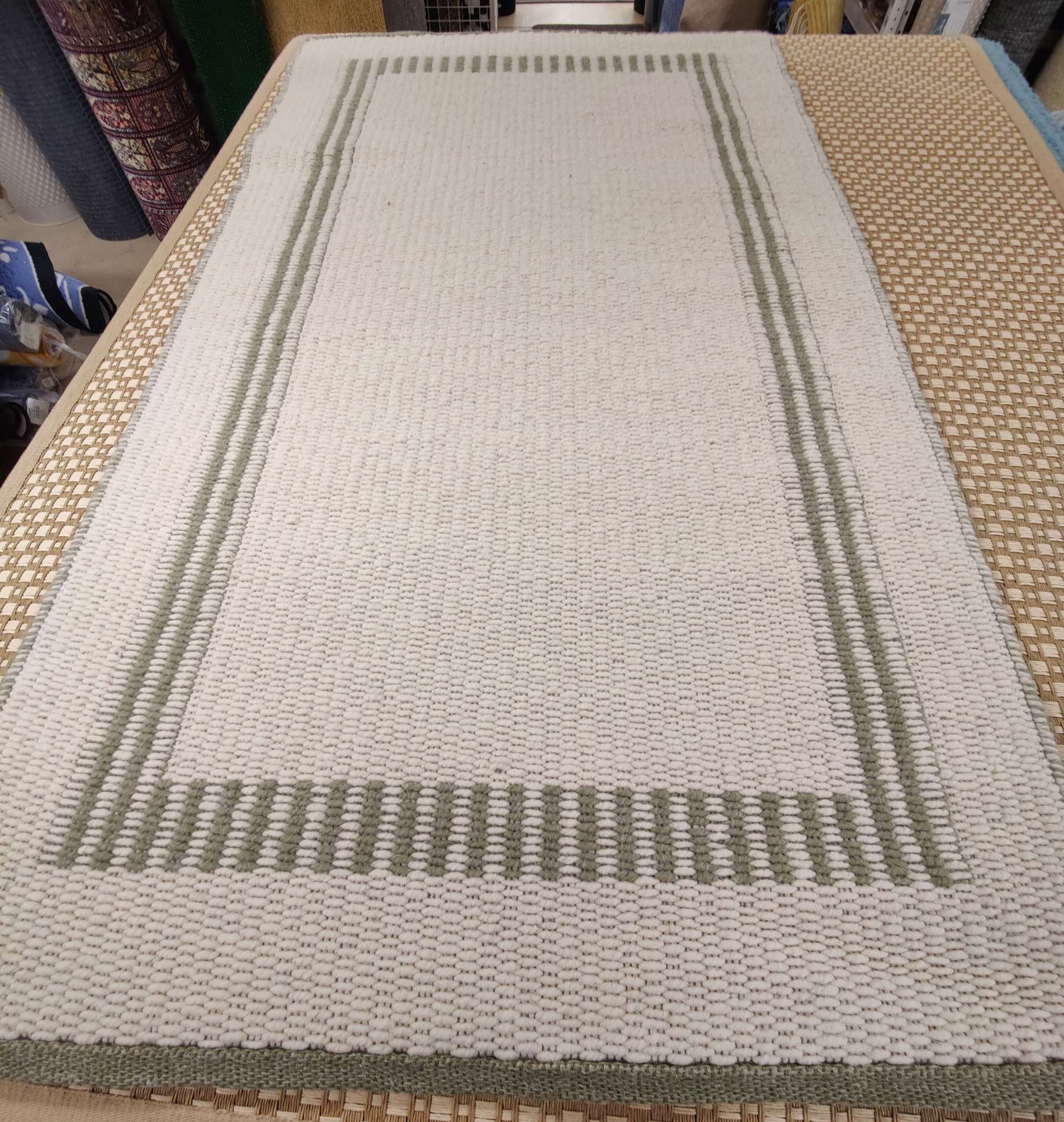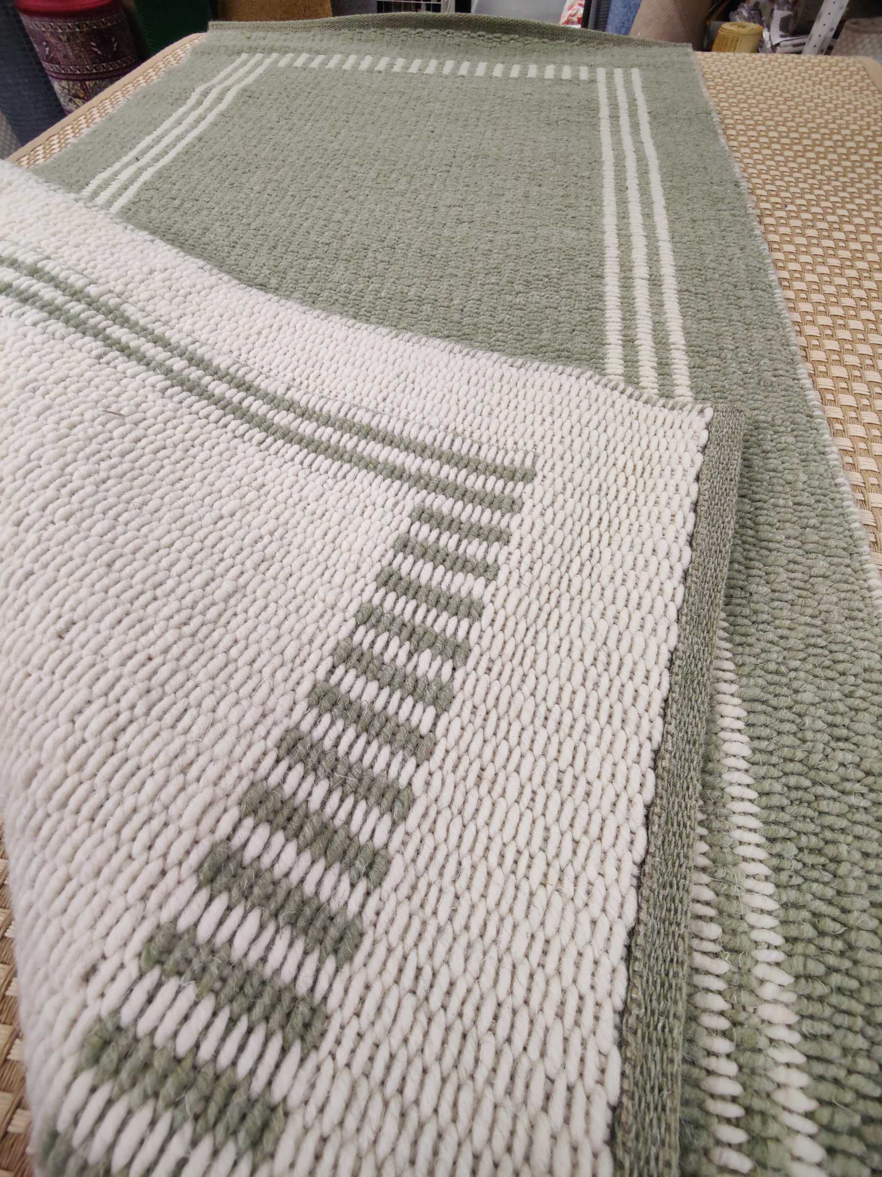 Laadukas kotimainen molemmin puolin pidettävä villamatto. Ei hapsuja päissä.