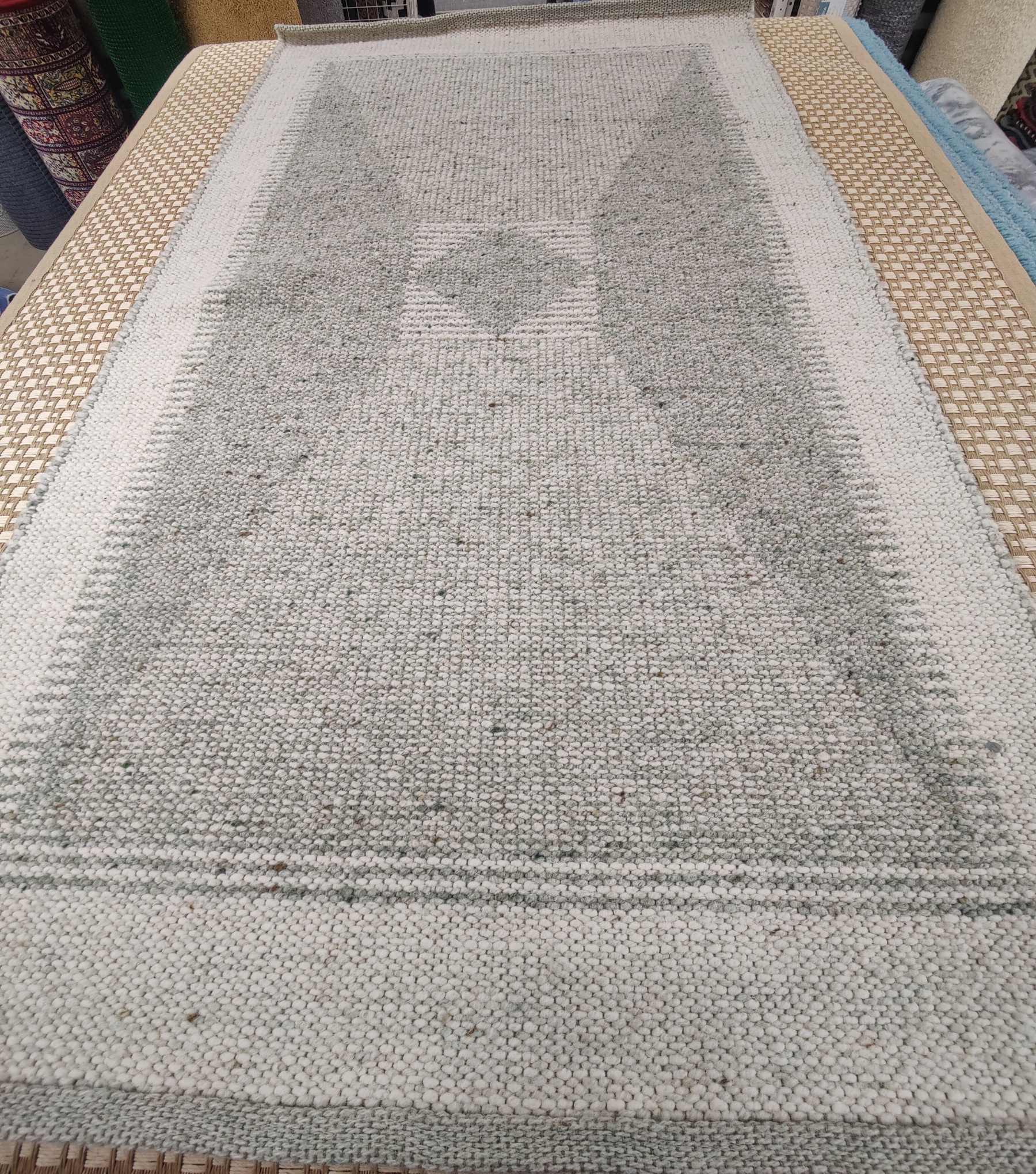 Laadukas kotimainen molemmin puolin pidettävä villamatto. Ei hapsuja päissä.