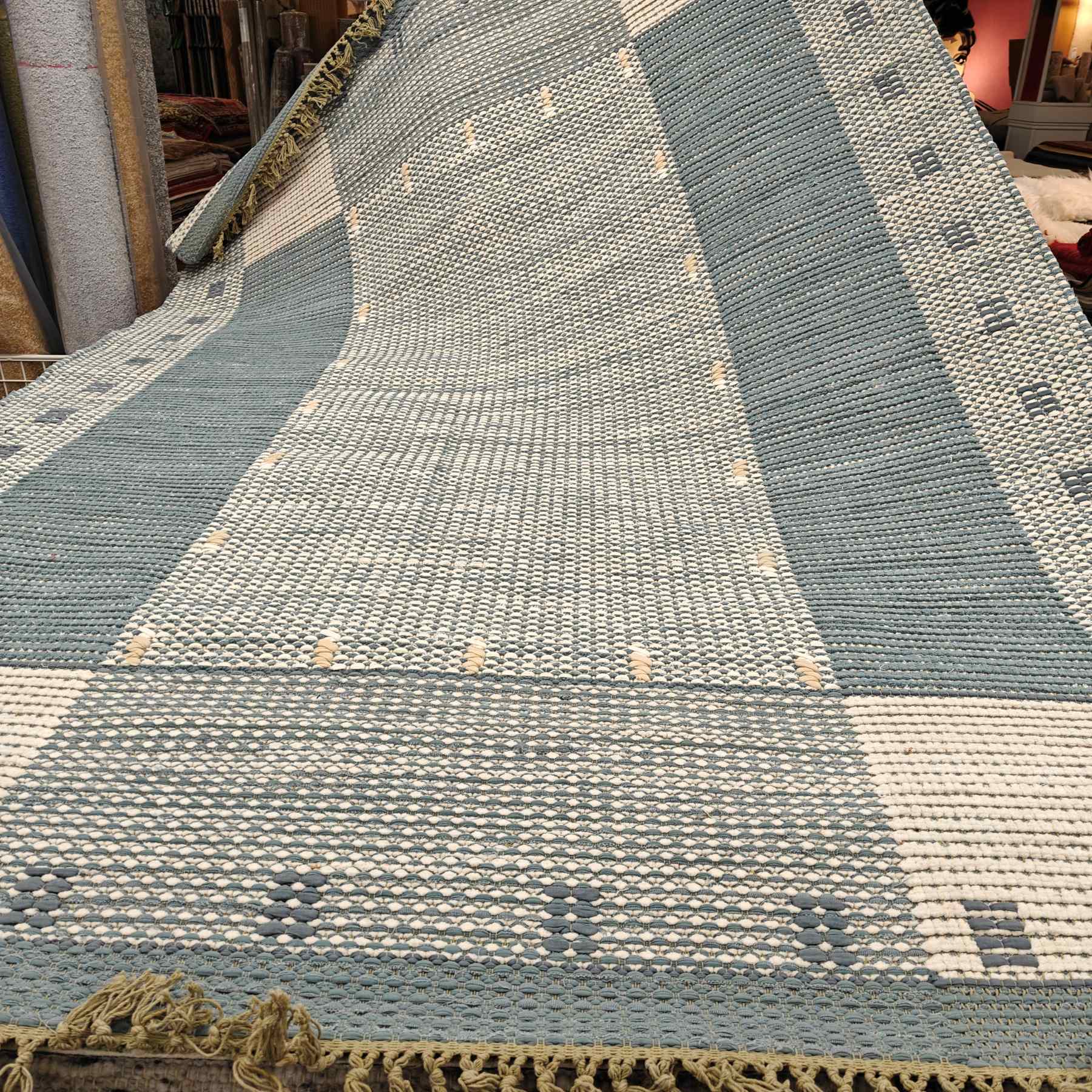 Mirabella on käsinkudottu laadukas ja erittäin tukeva puuvillamatto. Kaunis vaaleansinisen ja kitin sävyinen matto.