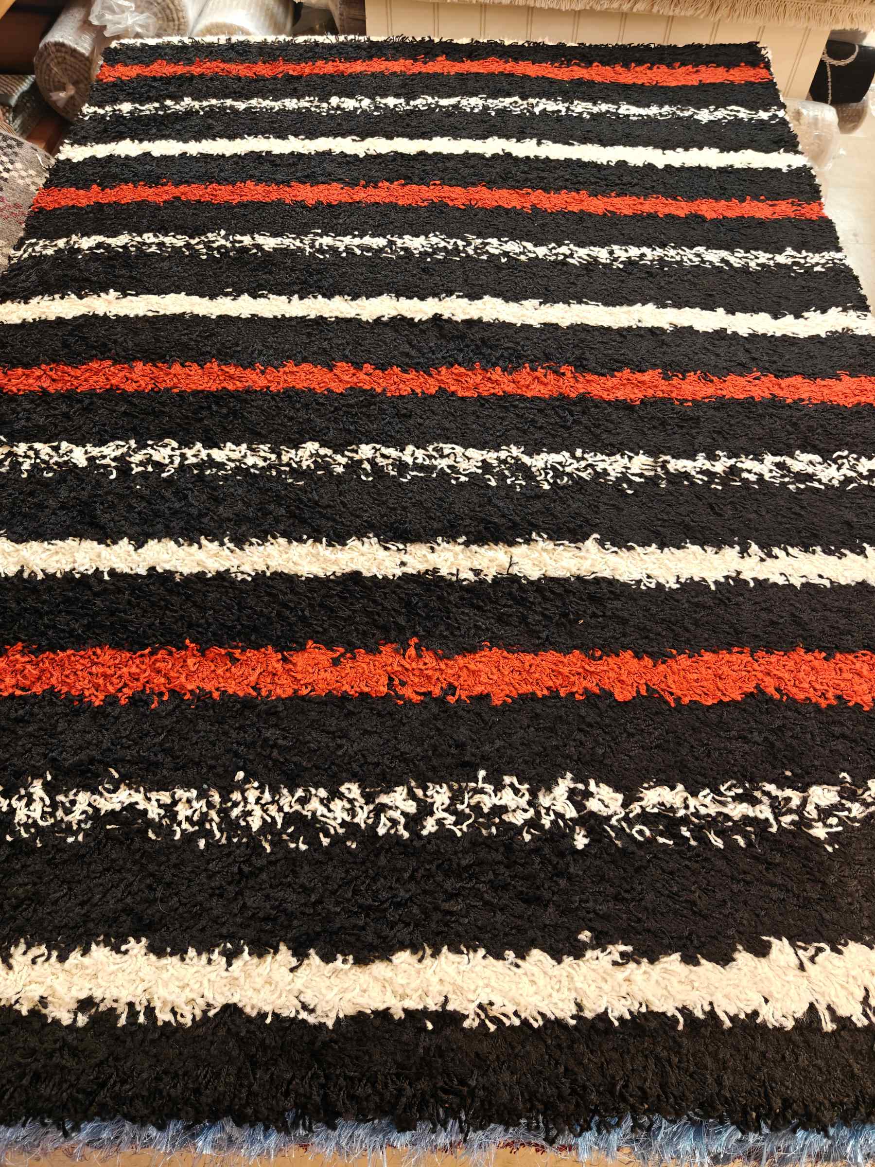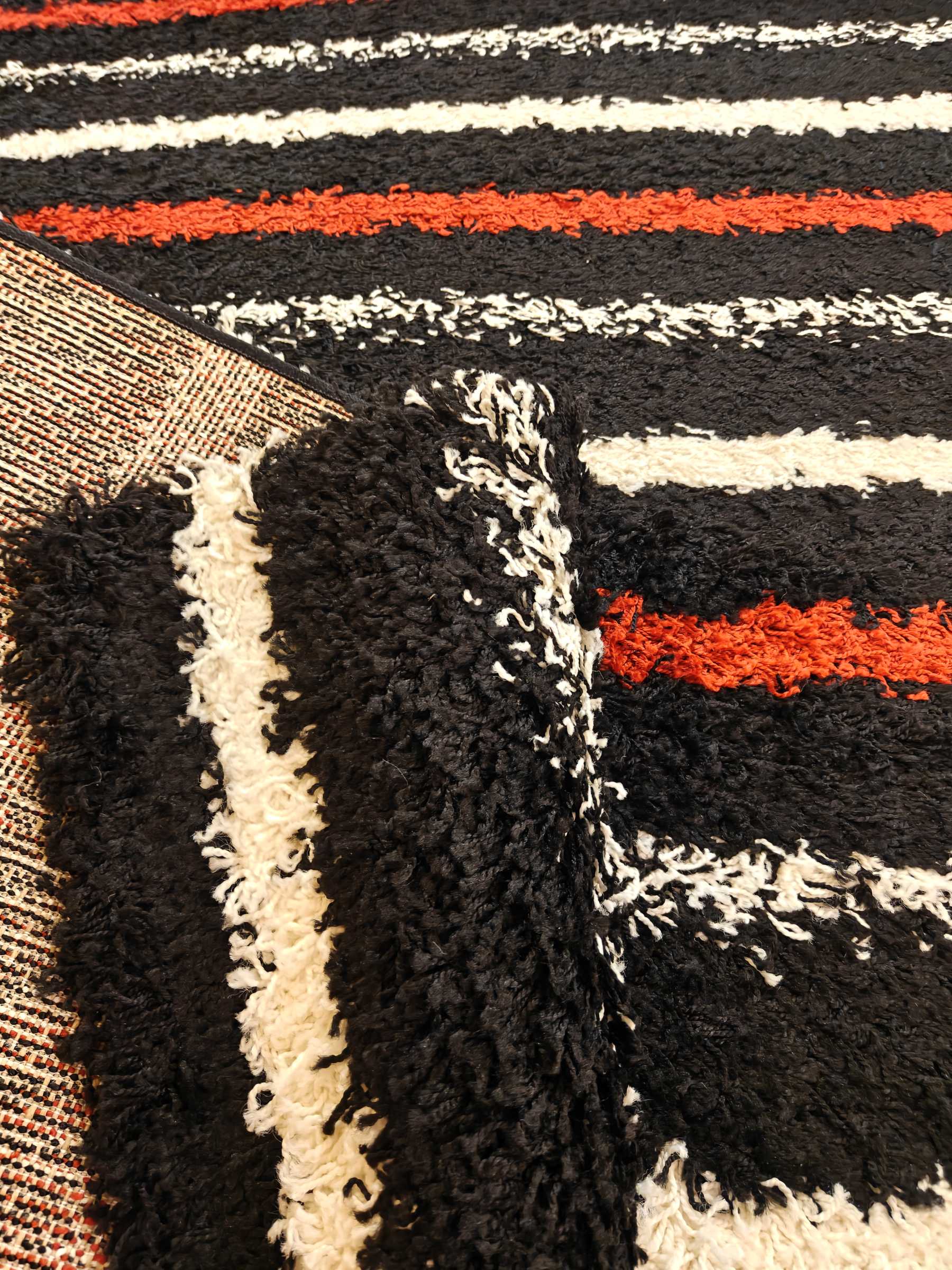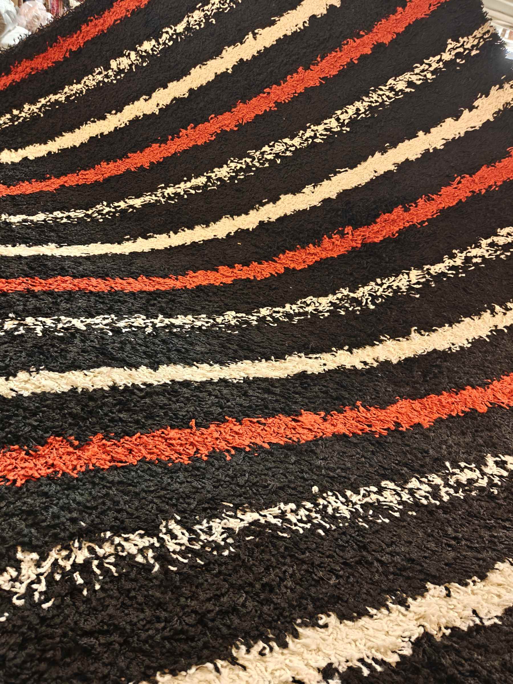 Pehmeä raidallinen nukkamatto, sopii niin olohuoneessen kuin vaikka makuuhuoneeseen.