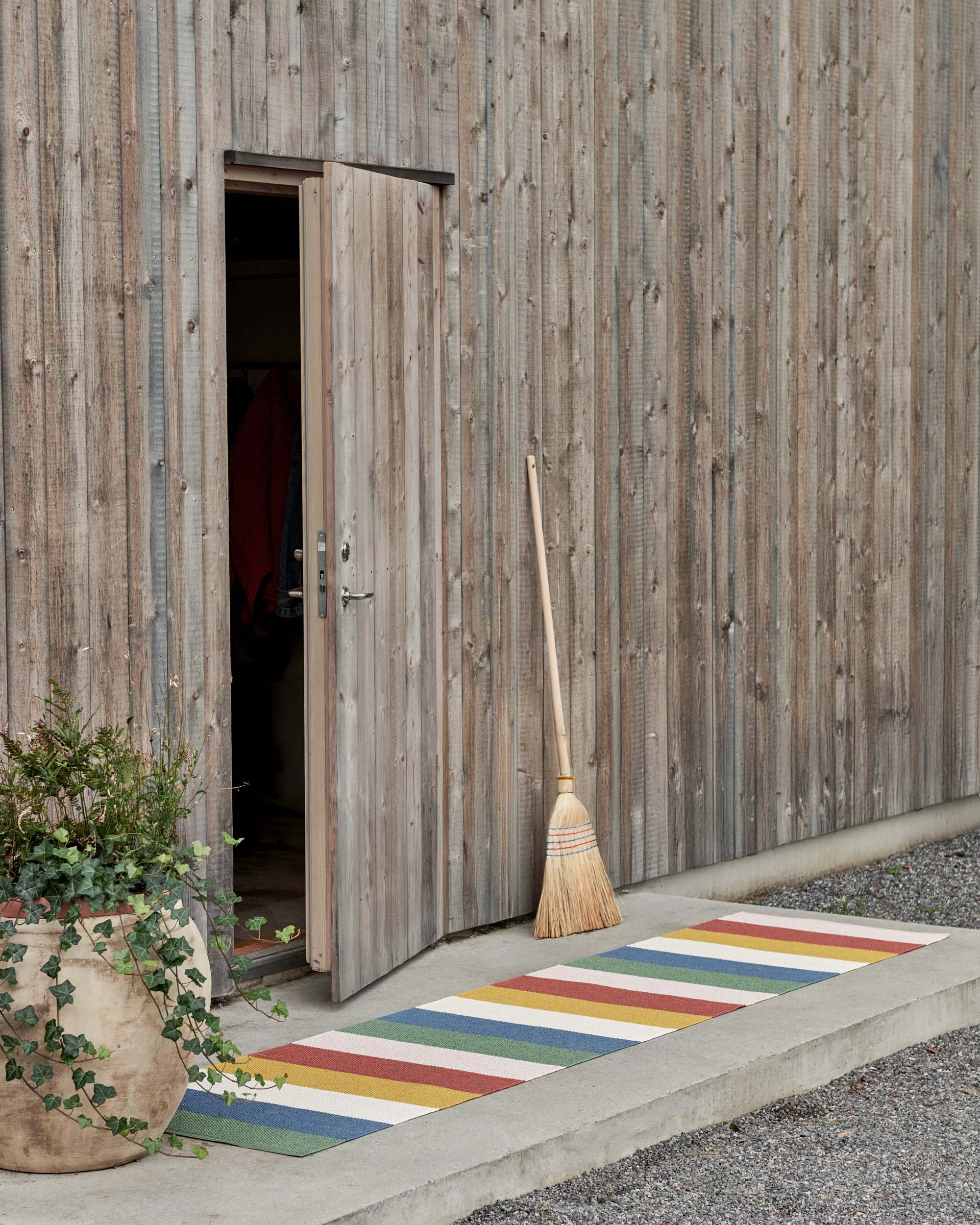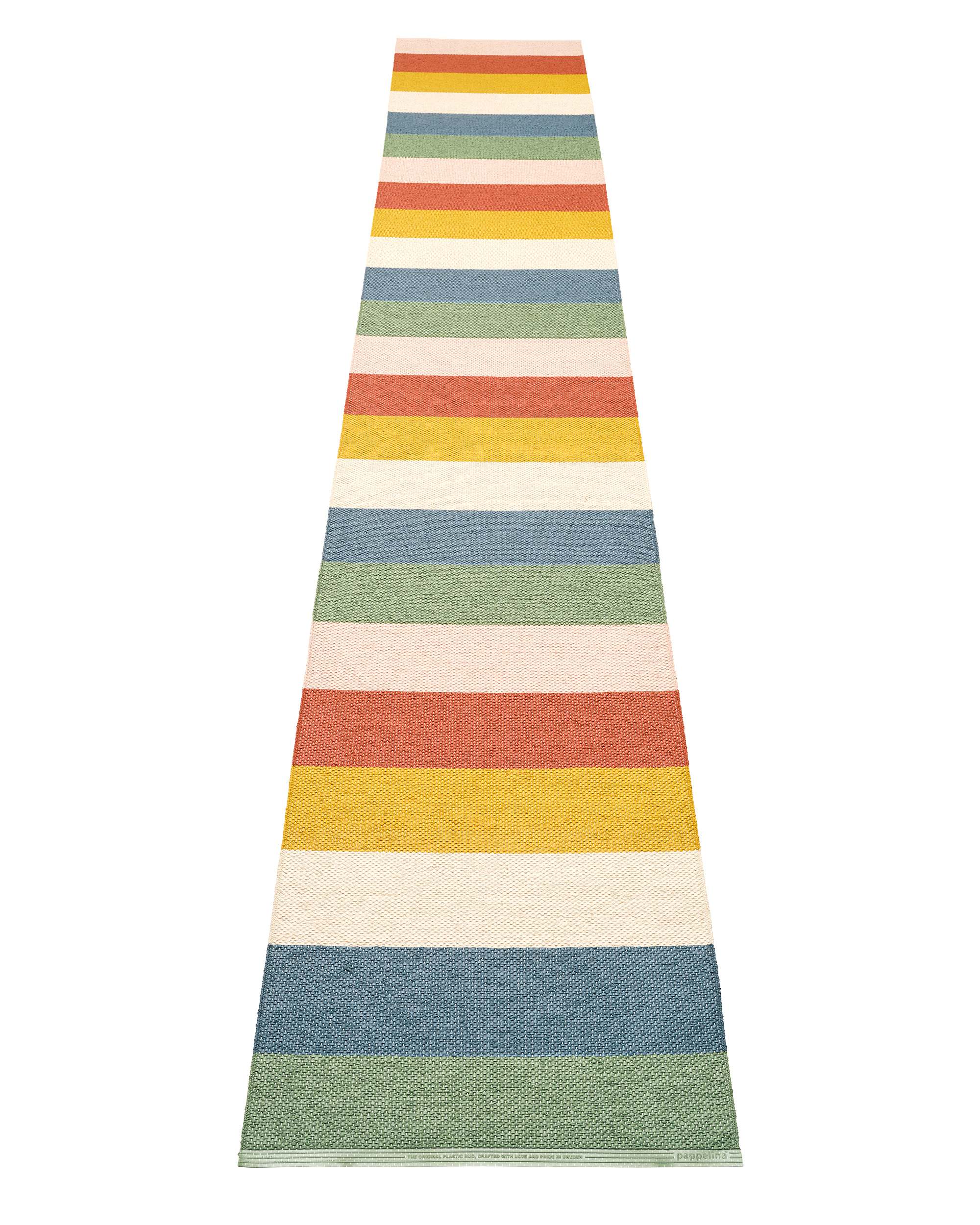 Muovimatto sisä- ja ulkokäyttöön, Valmistettu Ruotsissa valmistetusta, sertifioidusta ftalaatittomasta PVC-nauhasta, joka on kudottu perinteisillä kangaspuilla puisilla sukkuloilla. Erittäin käytännöllinen ja helppohoitoinen, käsin- tai konepesu alhaisessa lämpötilassa 30°C/85F, ei linkousta.