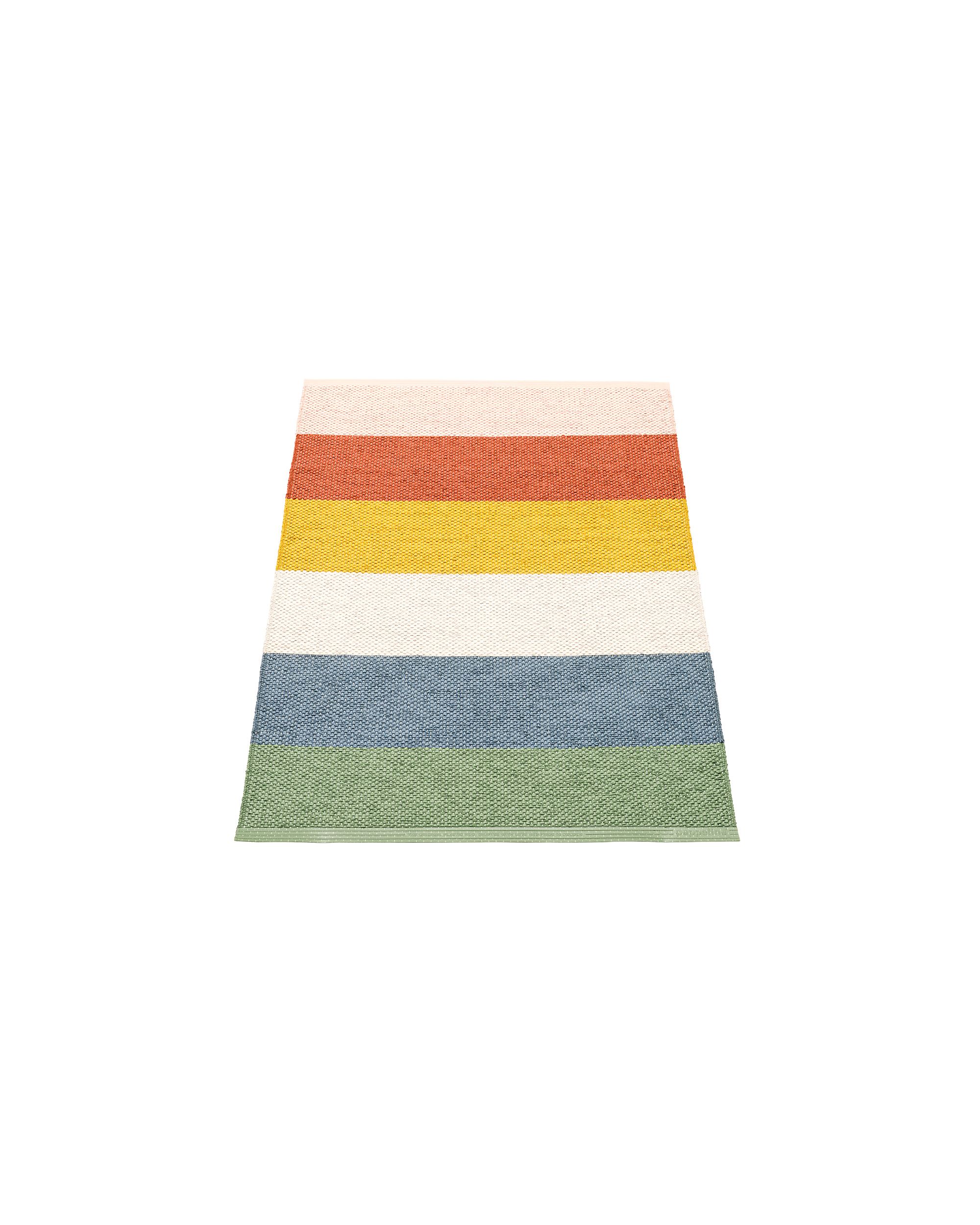 MOLLY on monivärinen raidallinen matto, joka yhdistää leikkisyyden ja rakenteen täydellisessä tasapainossa. Leveät vaakasuorat raidat luovat selkeän graafisen rytmin, joka lisää liikettä ja luonnetta mihin tahansa tilaan. Jokainen väriyhdistelmä tuo oman ilmeensä pehmeistä neutraaleista eloisiin kontrasteihin, mikä tekee MOLLYLta monipuolisen valinnan sekä moderniin että perinteiseen sisustukseen.