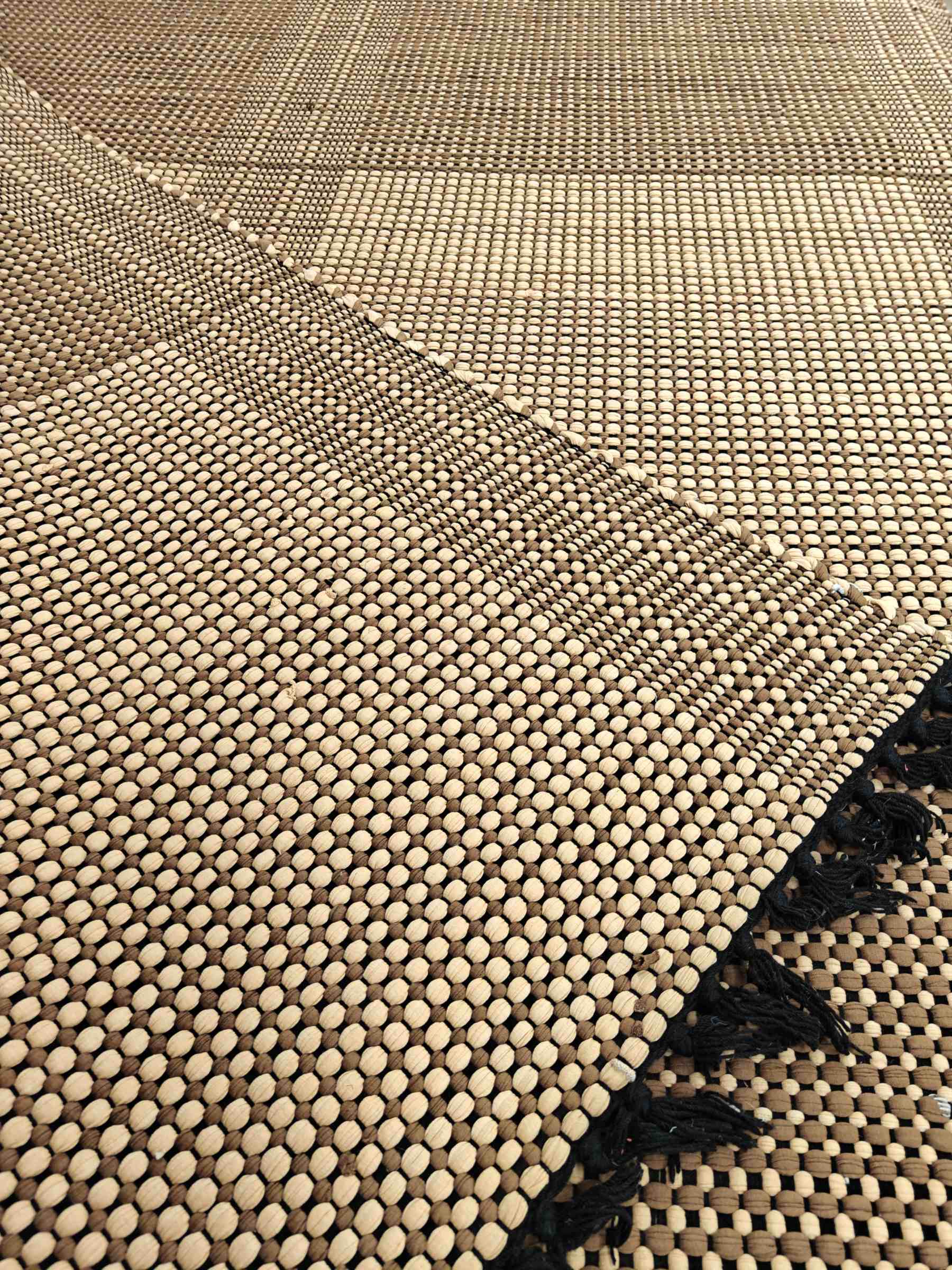 Napakka puuvillatrikoomatto. Ajaton beigen/ruskean väritys. Sopii hyvin mm. keittiöön. Valmistettu Intiassa.