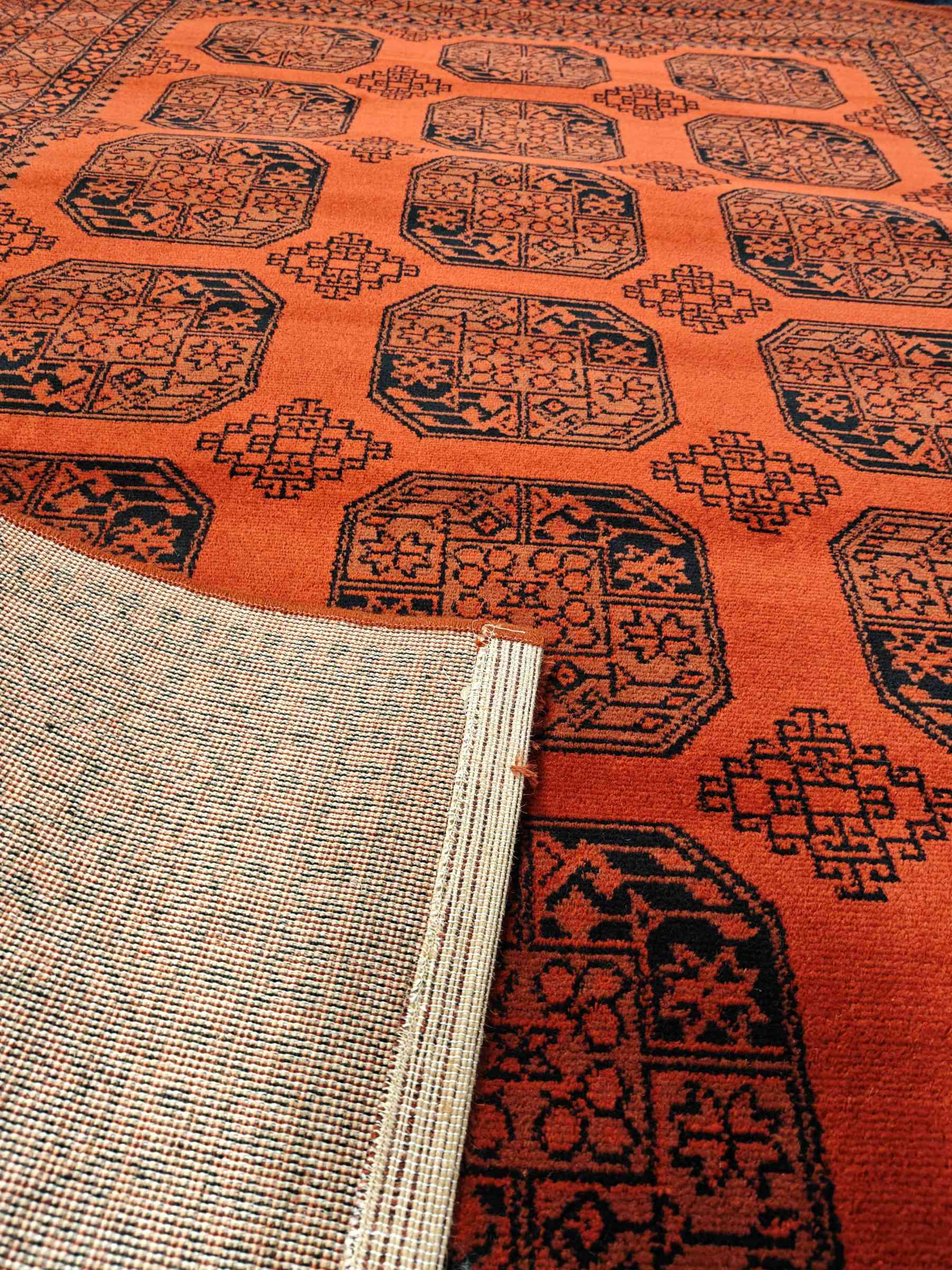 Laadukas villaplyyshimatto Royal Afghan on hienon punaoranssisen sävyinen tyylikäs matto.
