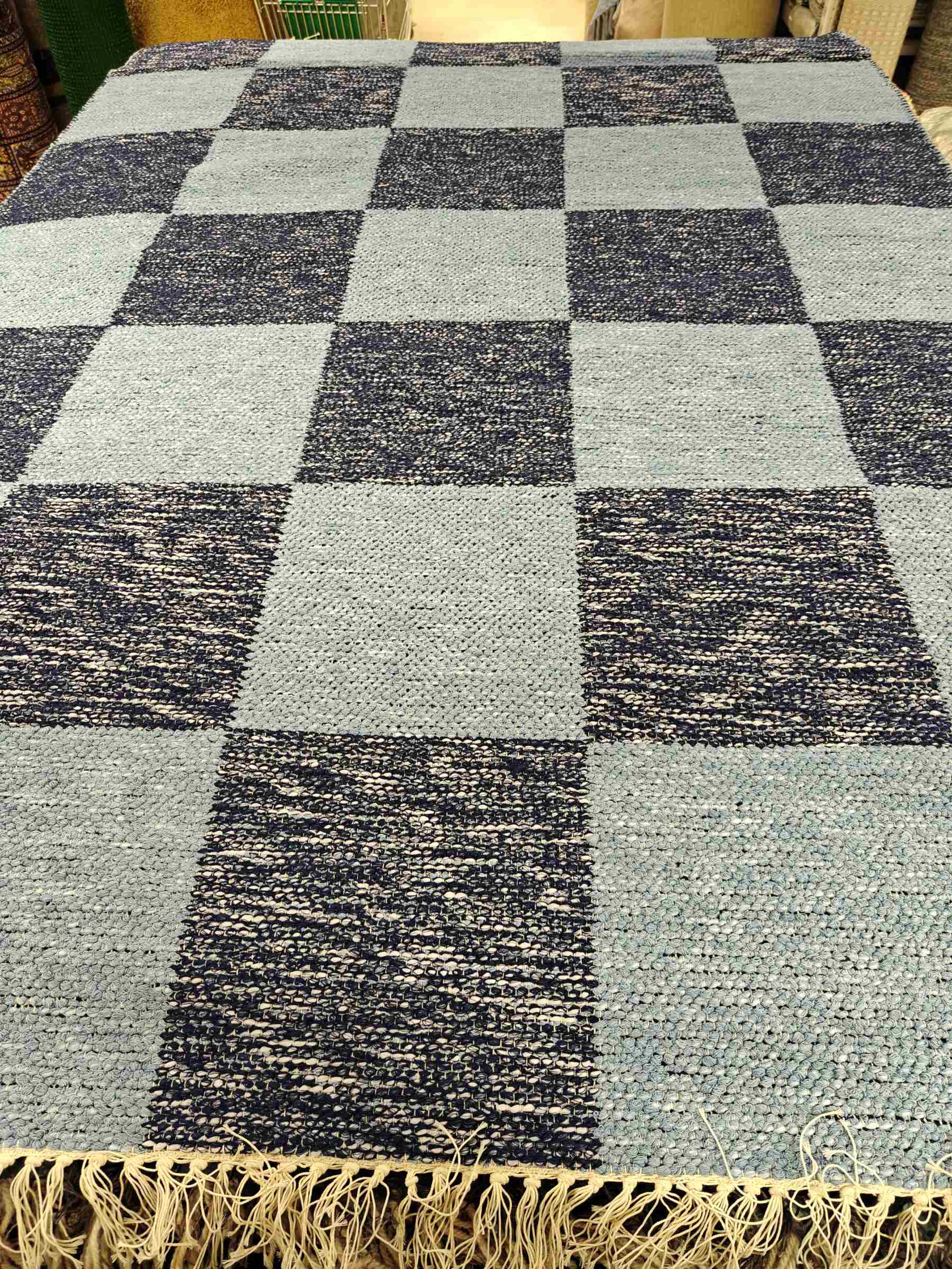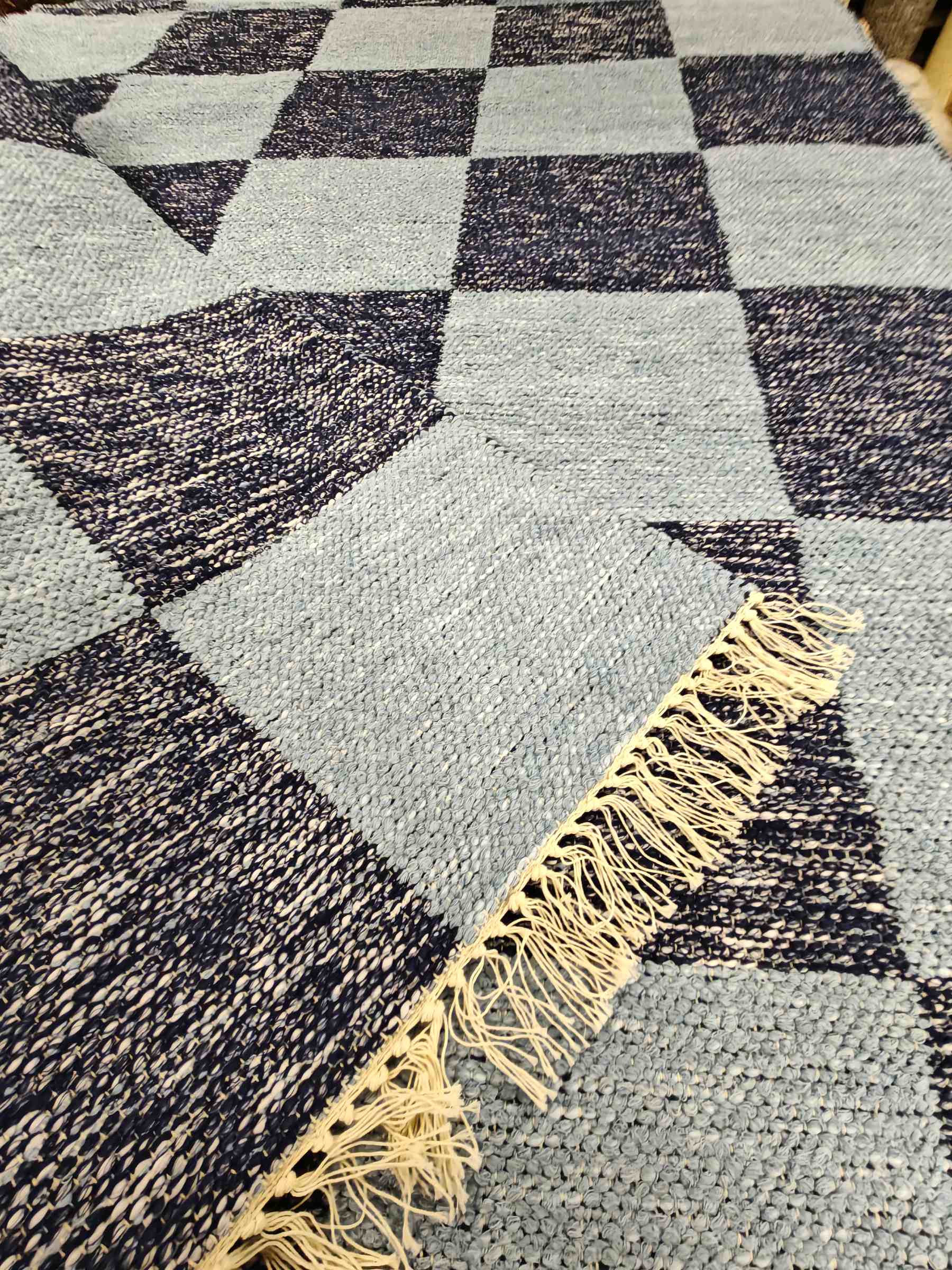 Sininen ruudullinen puuvillamatto. Koko 140 x 200 cm