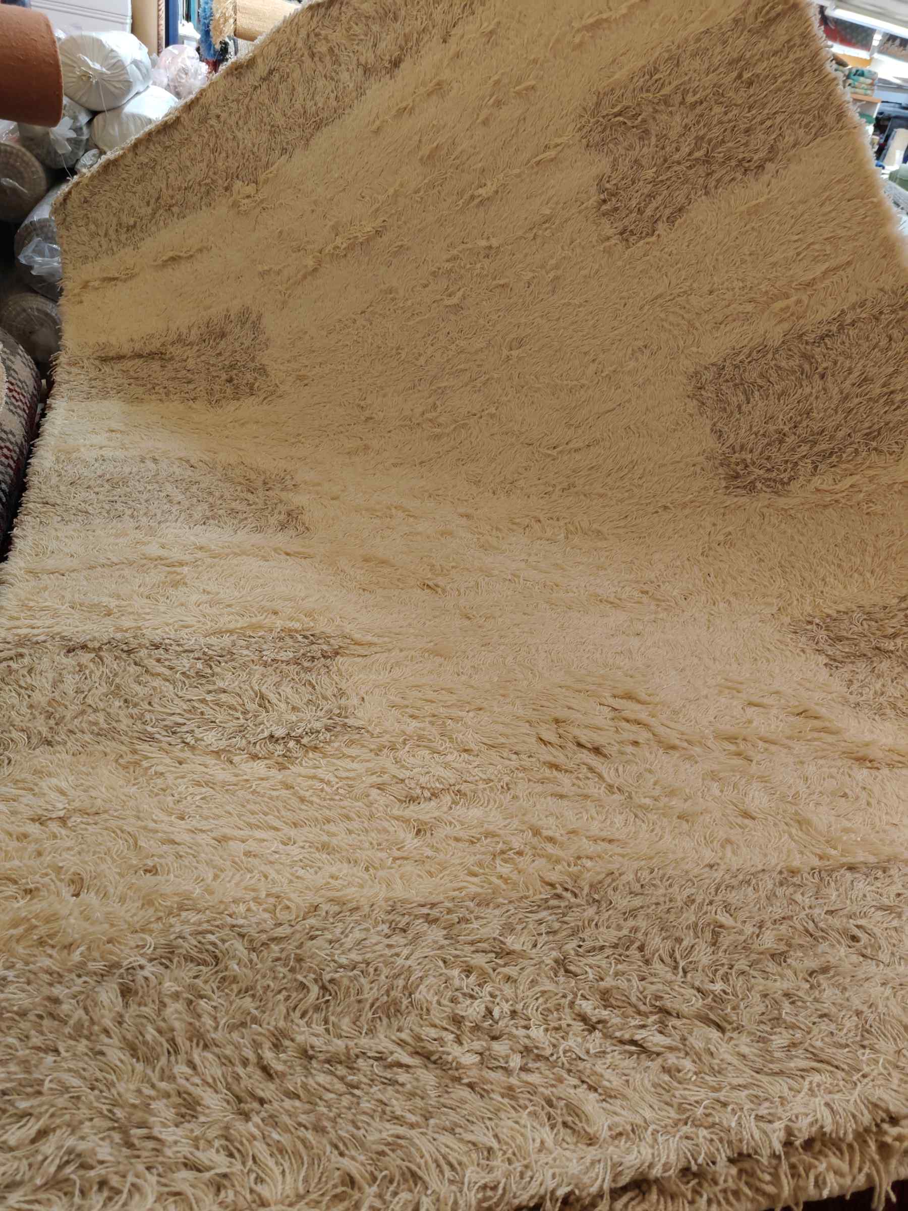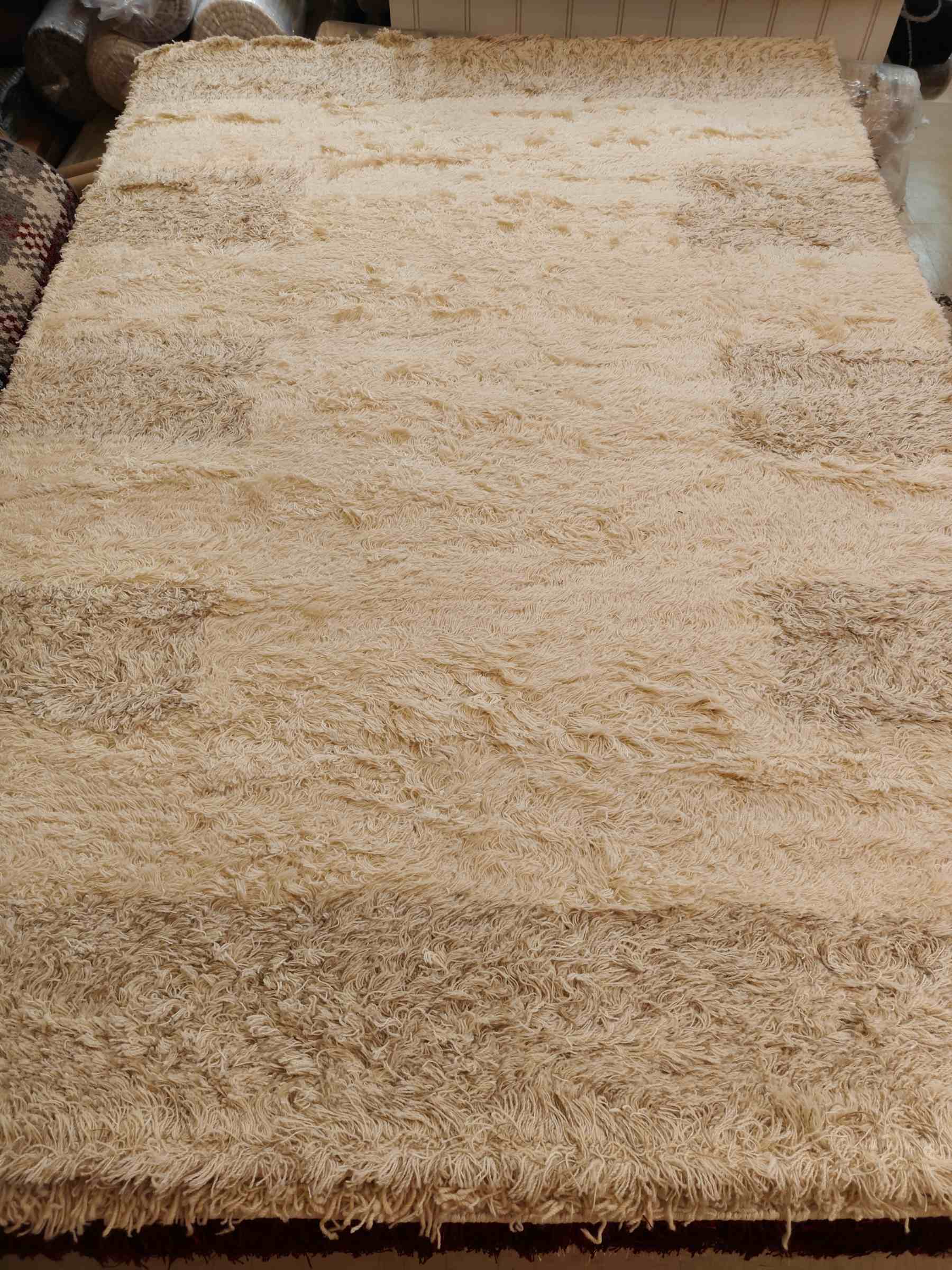 Hieno Shaggy villamatto pitkällä nukalla valkoisen ja beigen sävyssä. Ihanan pehmeä matto olo- tai makuuhuoneeseen.