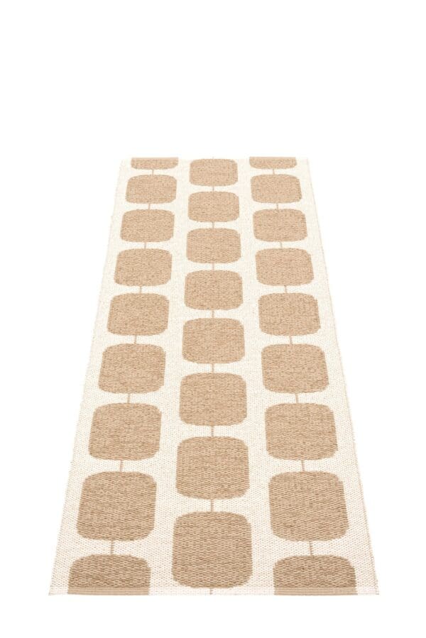 STEN on matto, joka vangitsee vaivattomasti retrotyylin olemuksen, mikä tekee siitä vahvan ehdokkaan Pappelinan klassikoksi. Sen ainutlaatuisessa kuviossa on pyöreitä muotoja ja suurikokoinen kuvio, mikä luo rohkean ja huomiota herättävän muotoilun, joka lisää ripauksen nostalgiaa mihin tahansa tilaan. Nimi “STEN” on saanut inspiraationsa itse kuvion muodosta. Ruotsiksi “STEN” tarkoittaa kiveä, mikä kuvastaa täydellisesti maton erottuvaa ja vankkaa muotoilua. Aivan kuten kivet tunnetaan kestävyydestään ja ajattomasta viehätyksestään, STEN tuo kotiisi pitkäikäisyyden ja kestävän tyylin tunteen. STENin avulla voit nauttia klassisen kuosin kauneudesta, joka on suunniteltu uudelleen moderniin maailmaan. Loimella on korkea UV-kestävyys ja sitä voidaan käyttää sekä sisällä että ulkona.