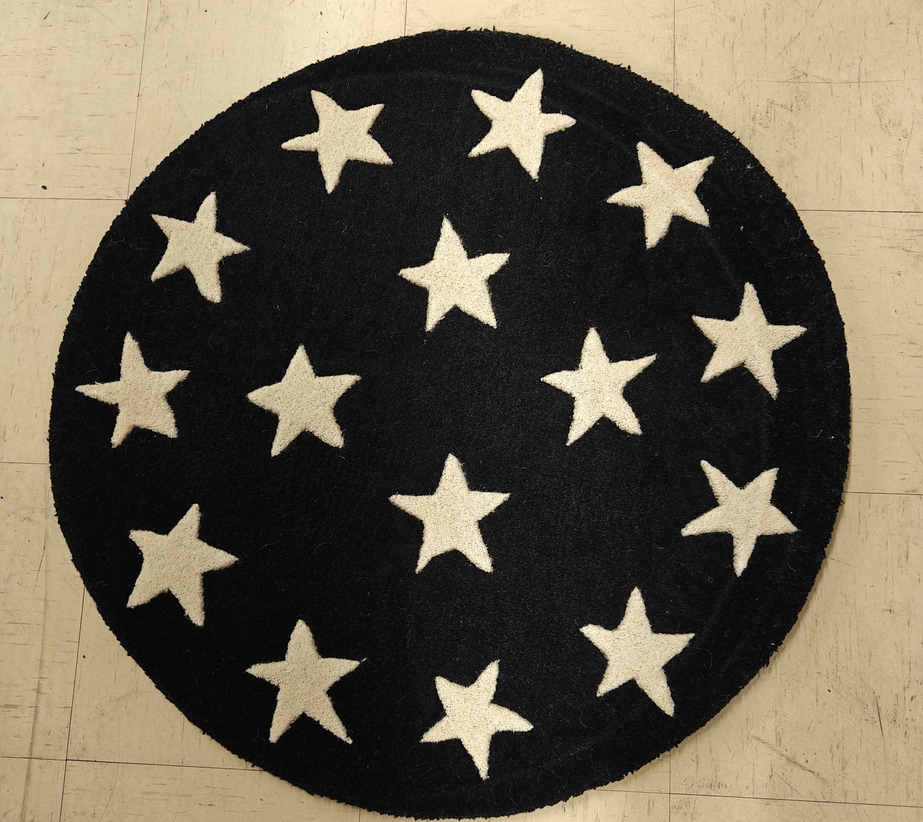 Käsin tuftattu Tähti villamatto koossa 80 cm.