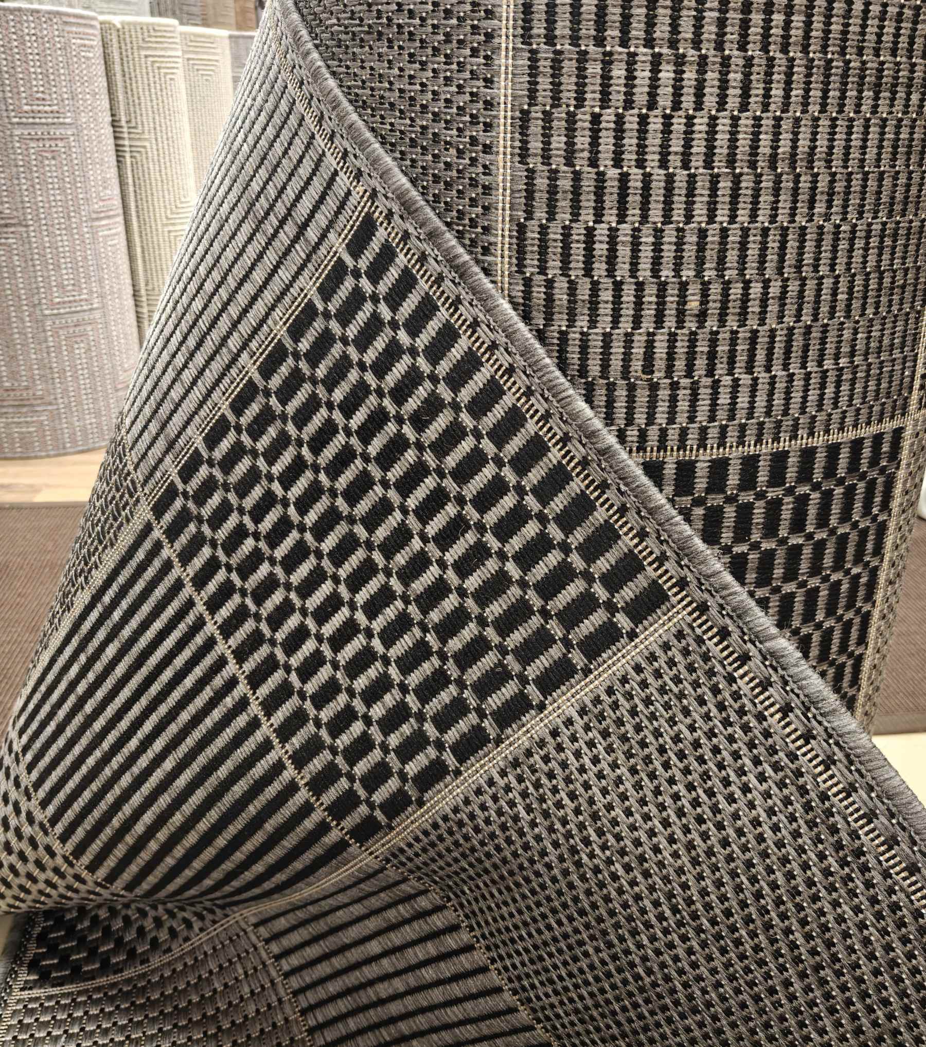 Taverna käytävämatto on tyylikäs musta-harmaa kuvioinen matto. Sopii eteiseen, keittiöön, kodinhoitohuoneeseen jne,