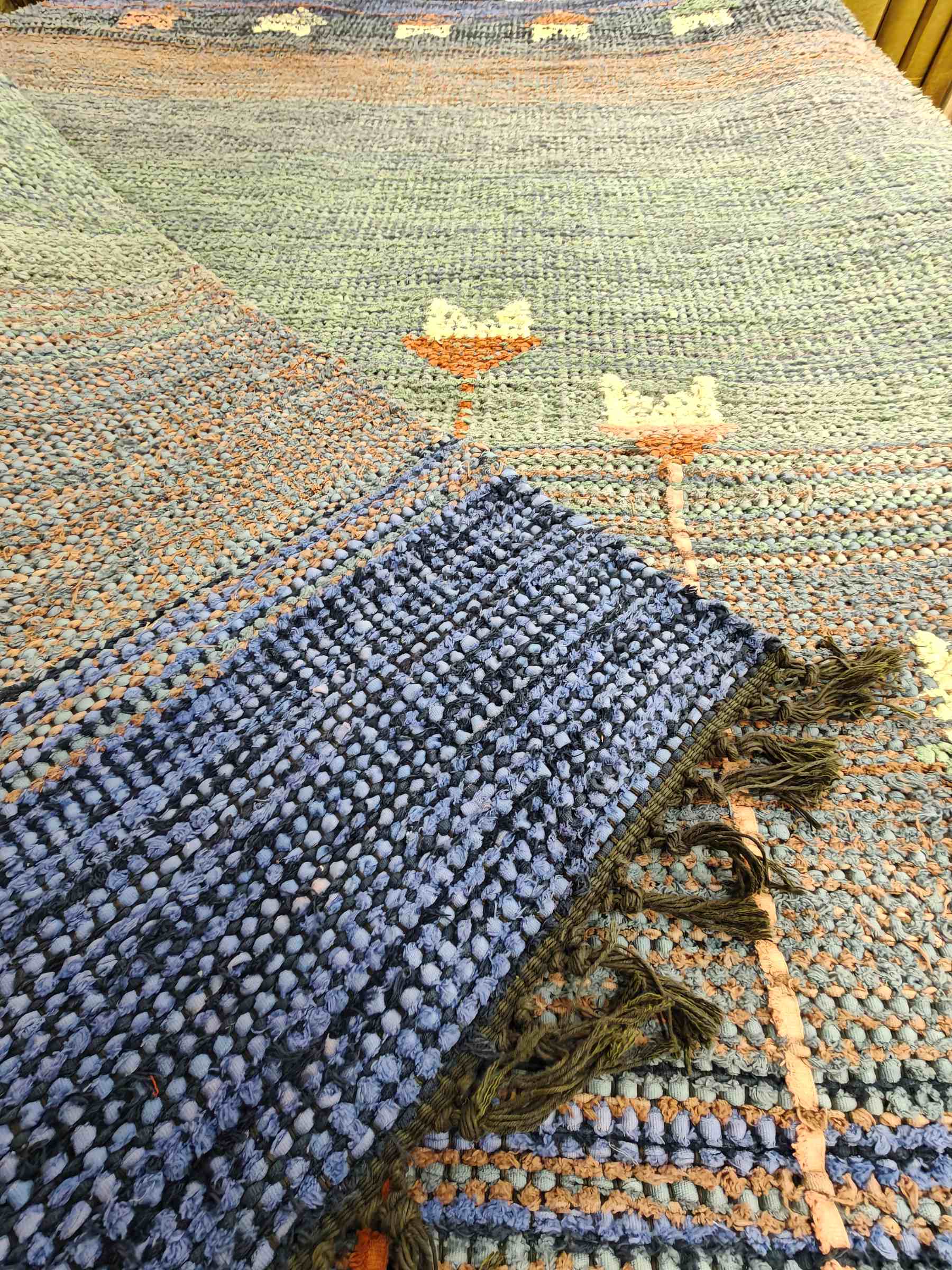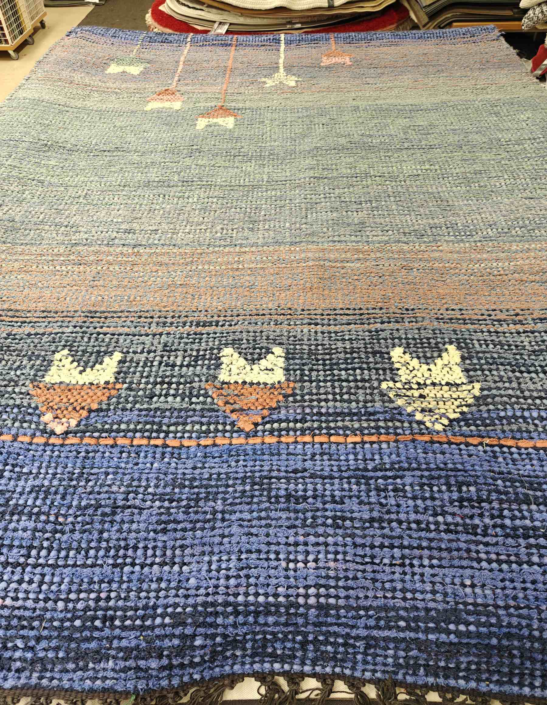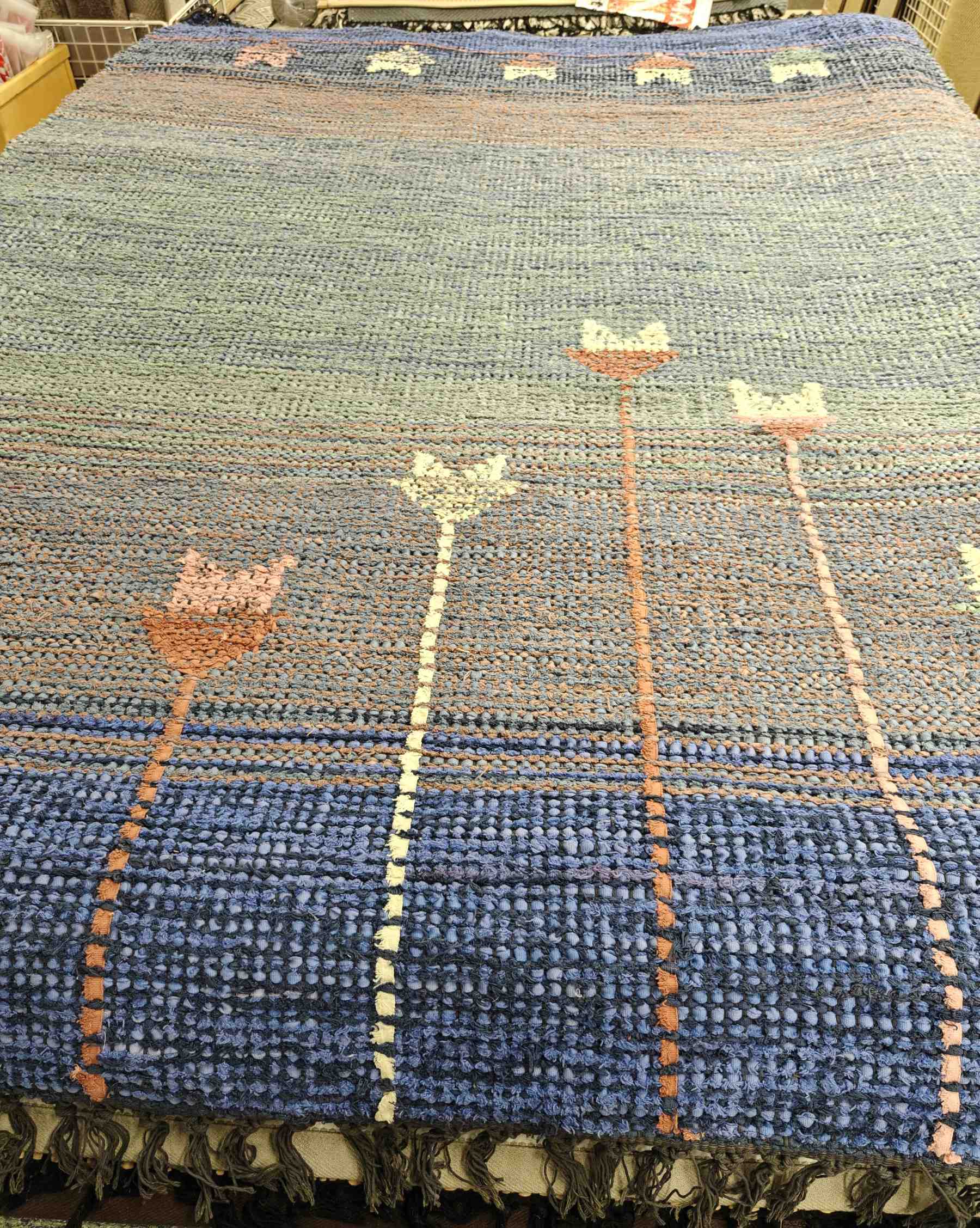 Tulip on Eija Rasinmäen suunnittelema, kauniin sinisen ja lilan sävyinen puuvillamatto.