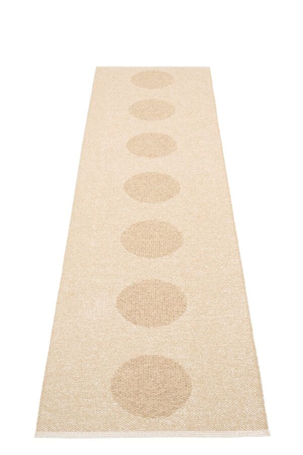Vera 2.0 Beige -matossa on klassinen suurten pisteiden kuvio, joka lisää yksinkertaista mutta rohkeaa tunnelmaa mihin tahansa sisustukseen. Tämä ikonisen Vera-maton päivitetty versio on valmistettu kestävistä materiaaleista, joissa yhdistyvät perinteinen muotoilu ja moderni ympäristövastuu.